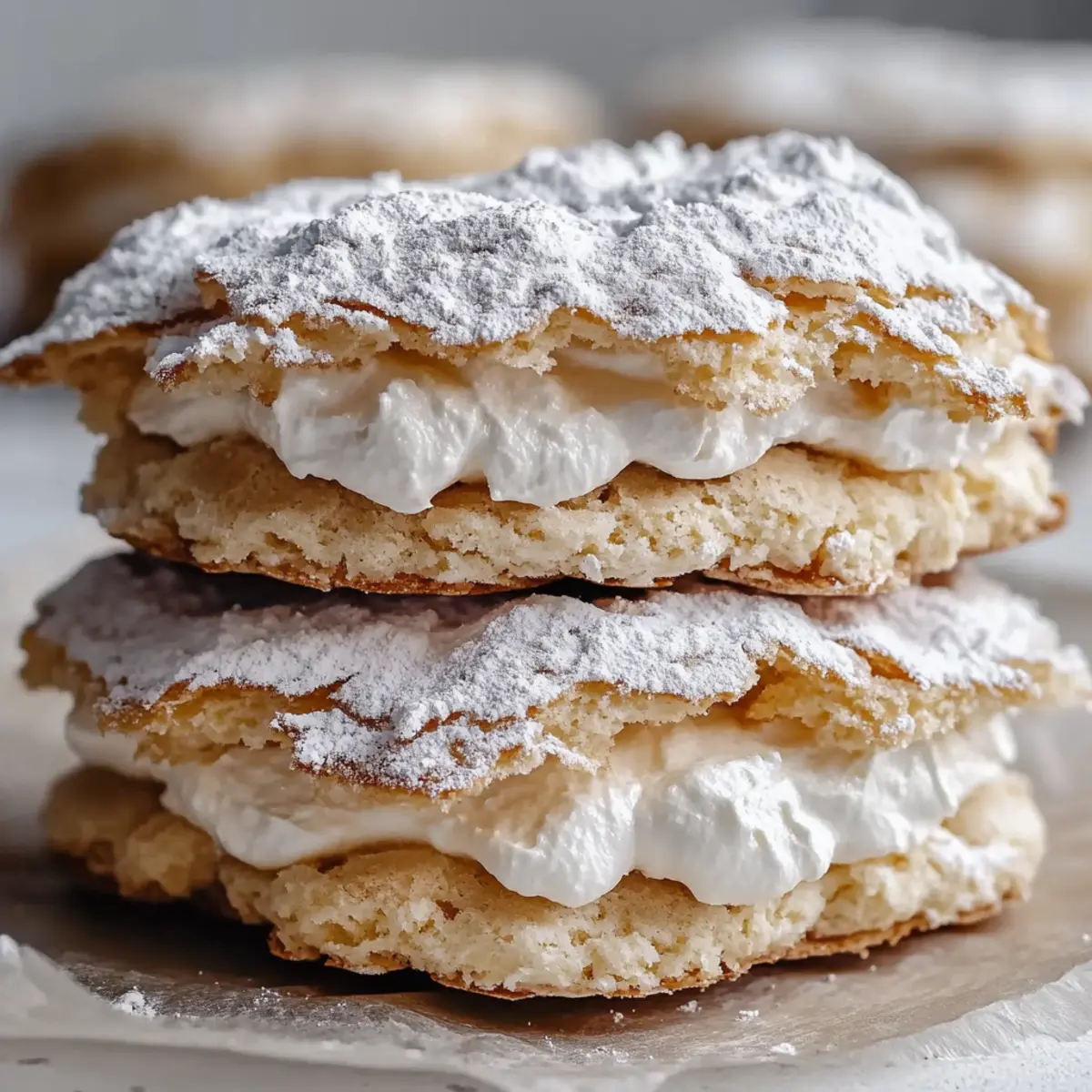These Almond Dacquoise Cream Clouds are perfect for busy home cooks looking to save time without sacrificing quality! You can prepare the meringue shells up to 3 days in advance; simply store them in an airtight container at room temperature to keep them crisp. Additionally, the cream filling can be made up to 24 hours ahead and refrigerated in a sealed container. When you’re ready to serve, just assemble the cookies by spreading the cream between the meringue layers, making sure to add any final touches like powdered sugar or sliced almonds right before serving. This way, you’ll achieve the same delightful taste and texture, giving you more time to enjoy your moments with family and friends!