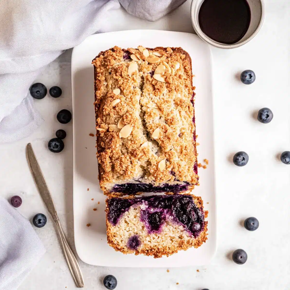 Blueberry Pie Quick Bread with Crunchy Almond Topping