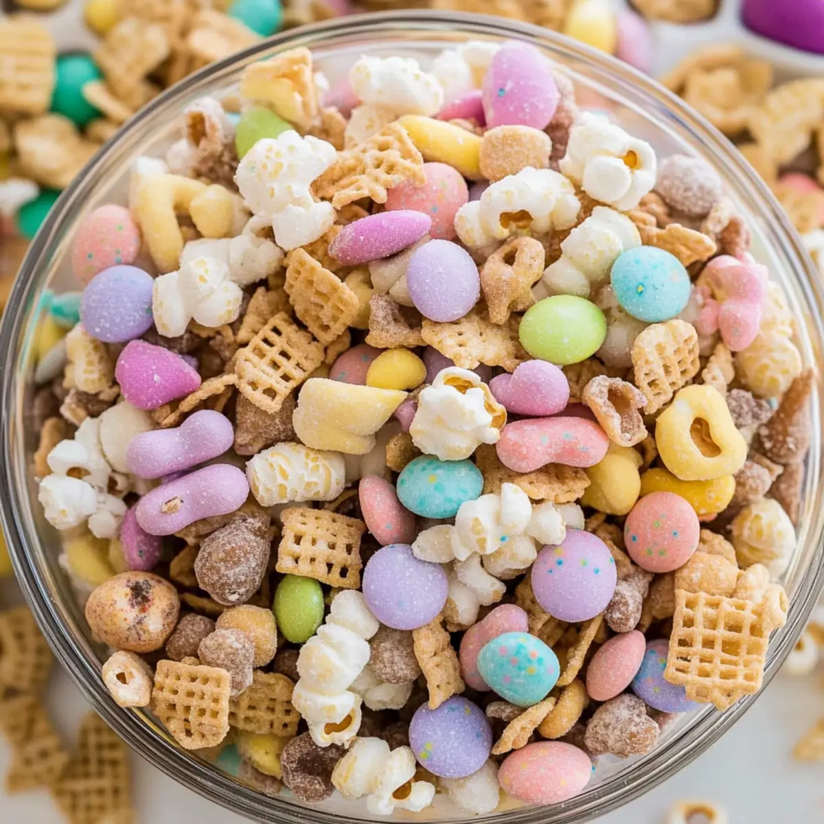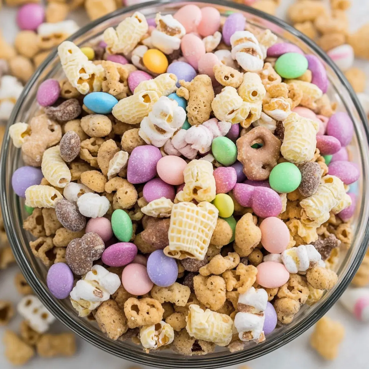 - Pastel Easter M&M’s – Brightens up the mix with color and sweetness; consider using other pastel candies like Skittles or jelly beans.