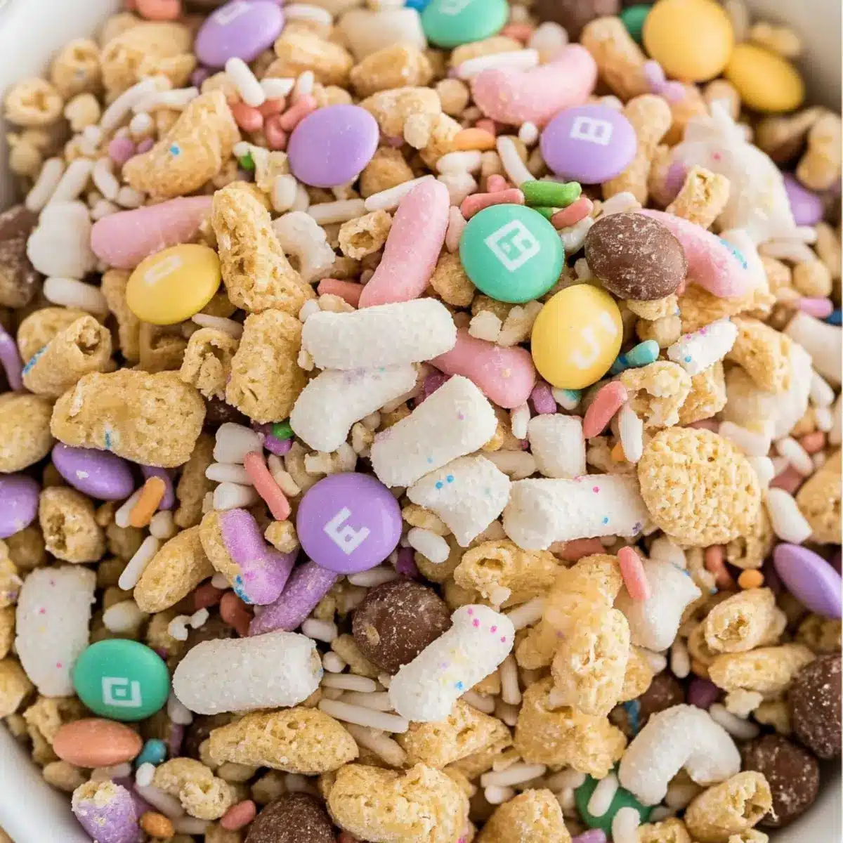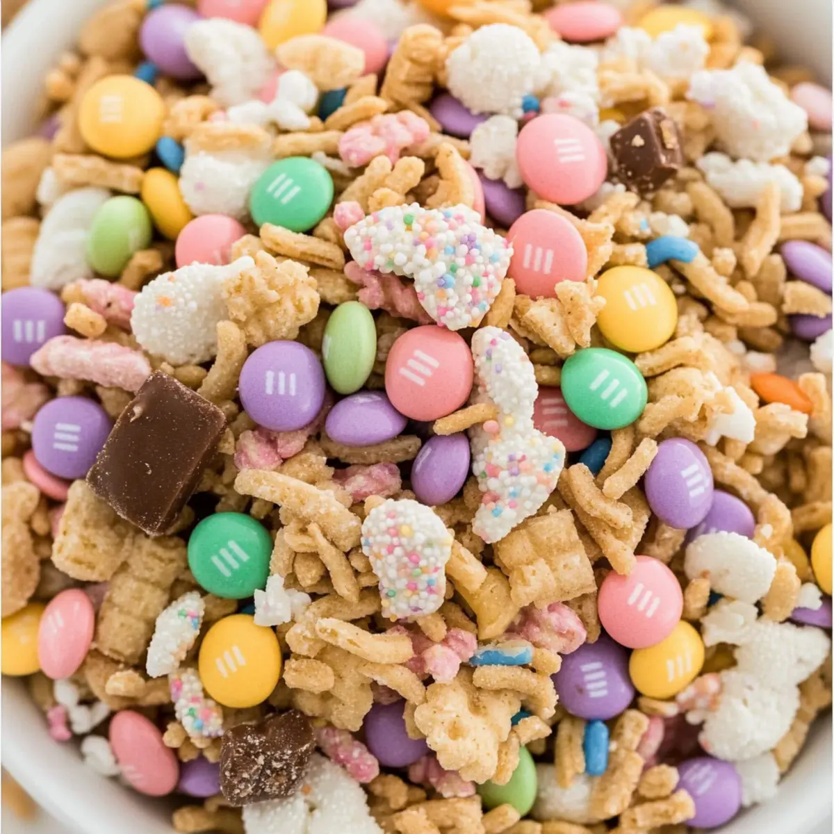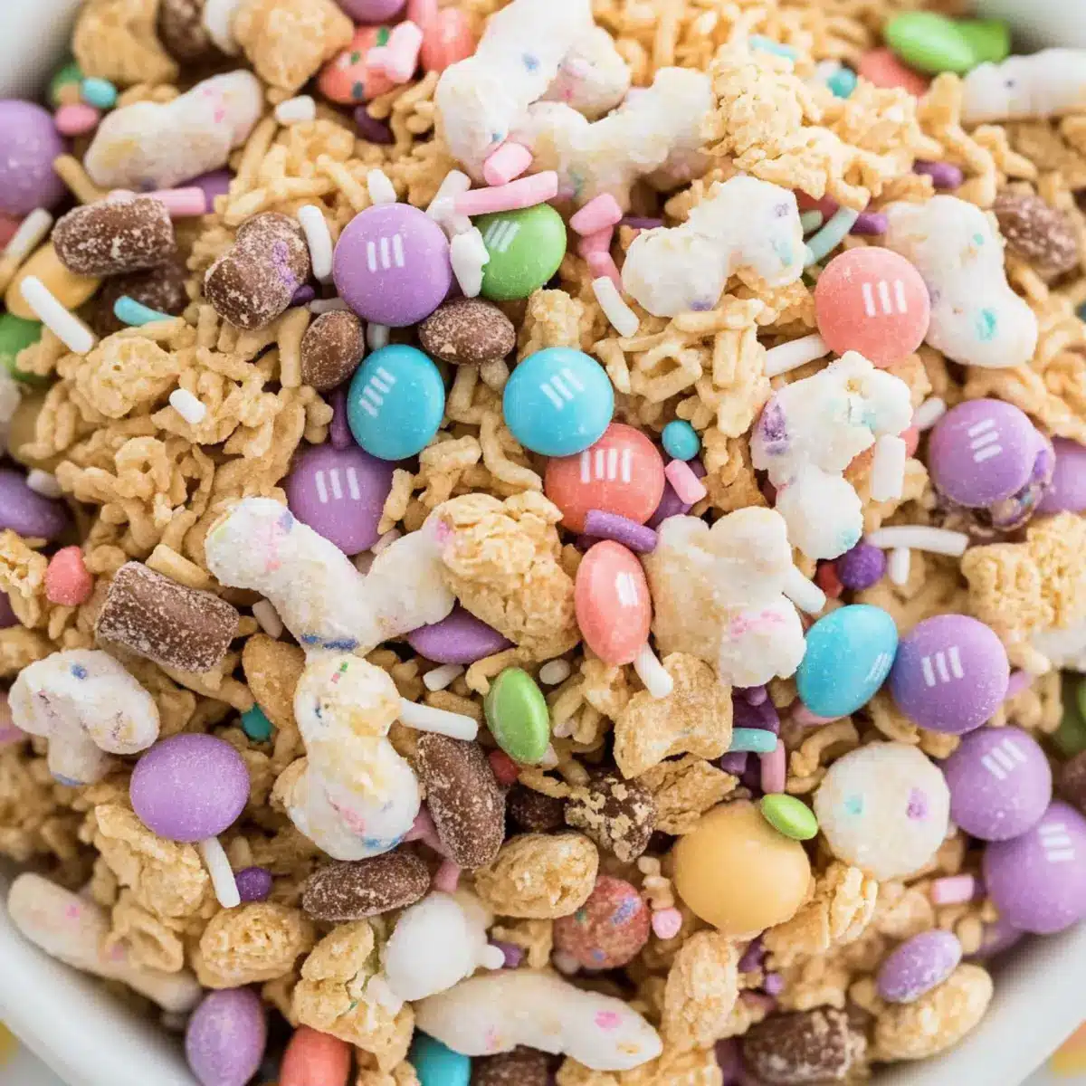 • Pastel Easter M&Ms – Provides color and sweetness to brighten up your mix; feel free to swap with other pastel candies like Skittles or jellybeans.