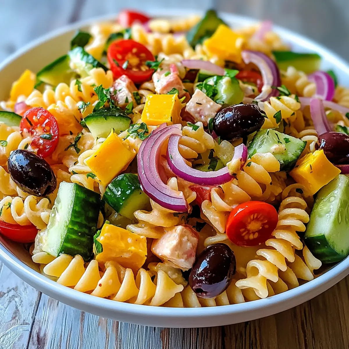 These California Pasta Salad is perfect for meal prep enthusiasts! You can chop and refrigerate all the fresh vegetables (cherry tomatoes, cucumber, red onion, and bell pepper) up to 3 days in advance to save precious time on busy weeknights. Simply store them in an airtight container to maintain their quality and prevent browning. The cooked rotini can also be prepared a day ahead; just toss it with a bit of olive oil before refrigerating. When you’re ready to serve, combine all the prepped ingredients with the cheese and dressing, then chill for at least 30 minutes for the flavors to meld beautifully. Enjoy a quick, refreshing meal with minimal effort!
