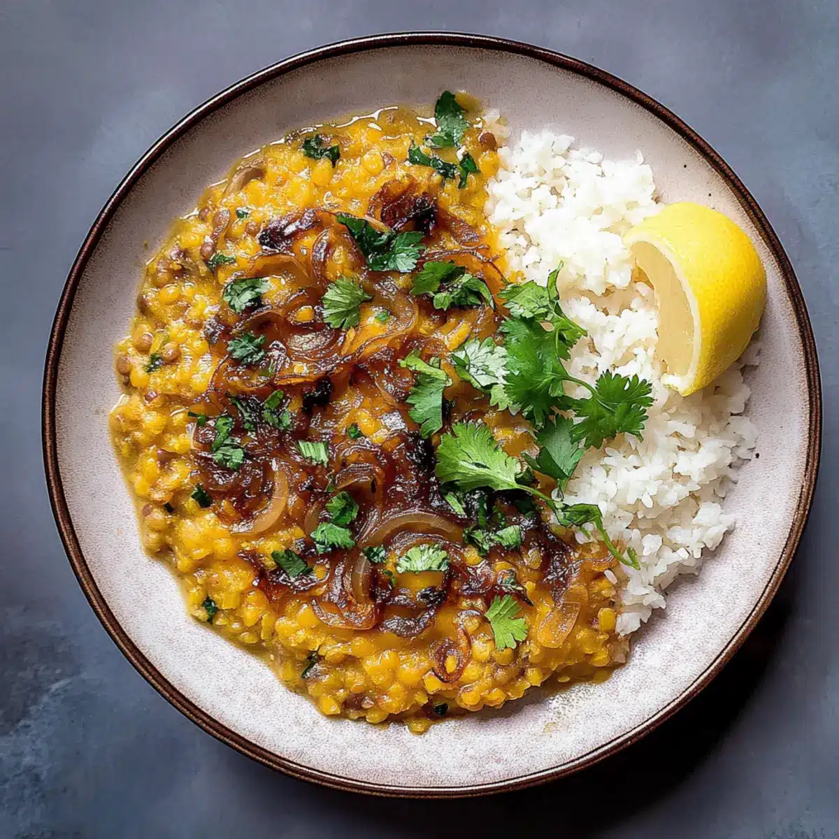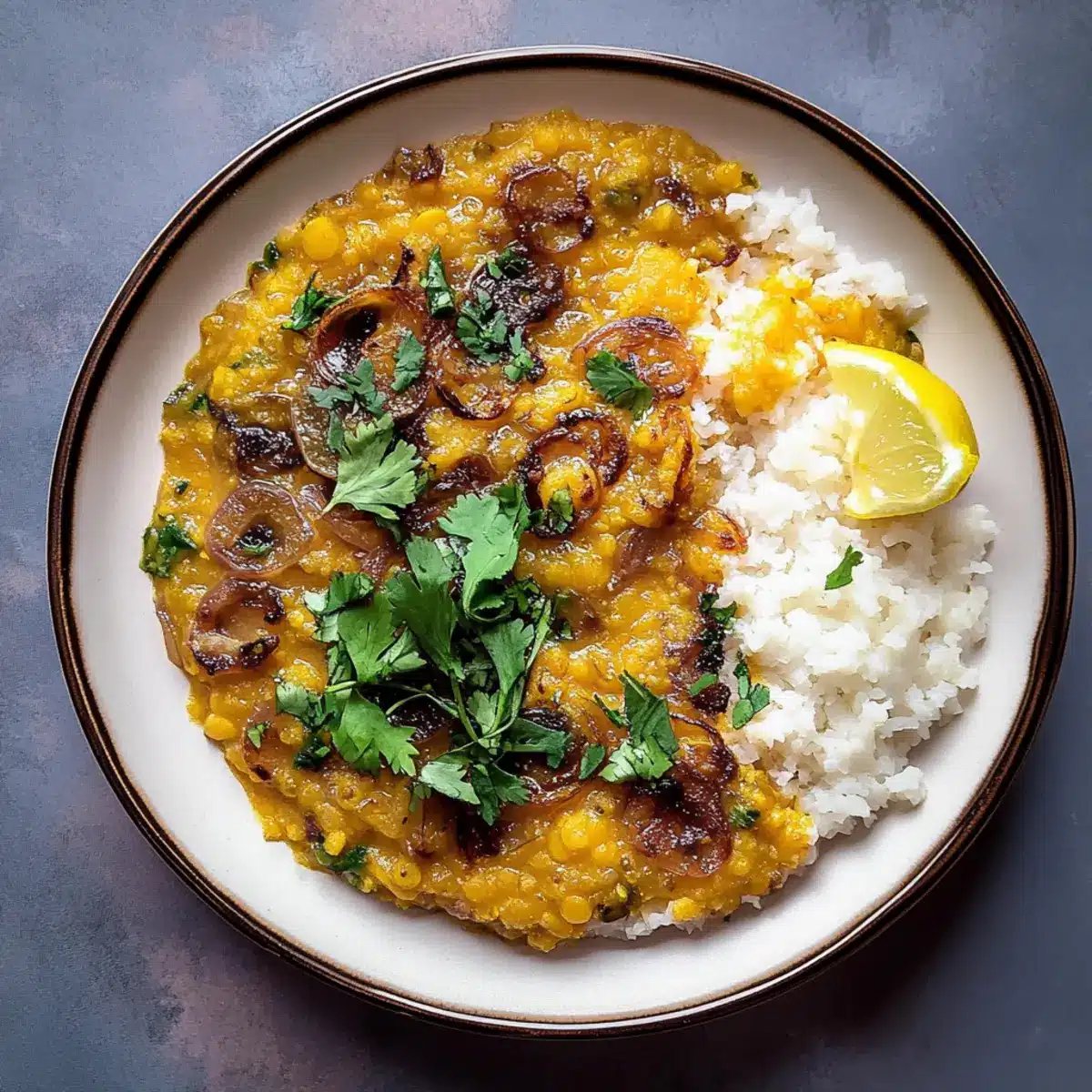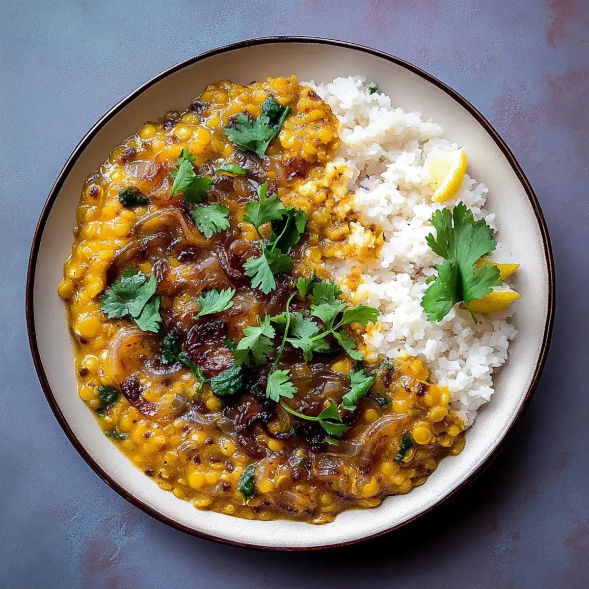 To finish your Caramelized Onion Dal, garnish with freshly chopped cilantro and a squeeze of lemon juice if desired. This adds a burst of freshness that perfectly complements the rich, creamy dal, offering a delightful balance of flavors.