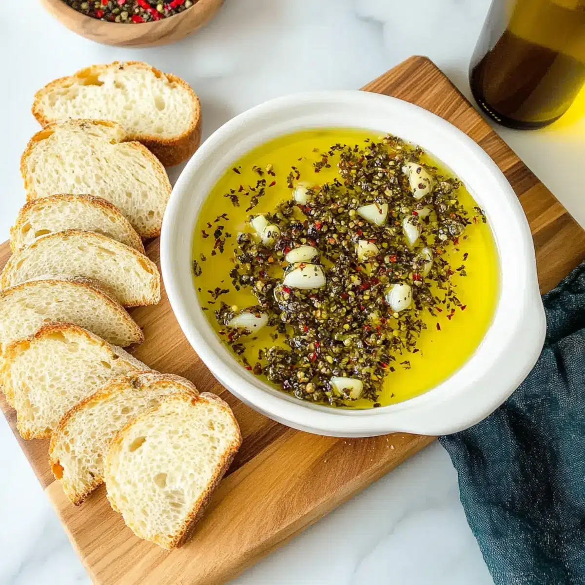 - Marinated Olives: Their briny flavor adds a burst of contrast, delightfully playing off the richness of the dipping oil.