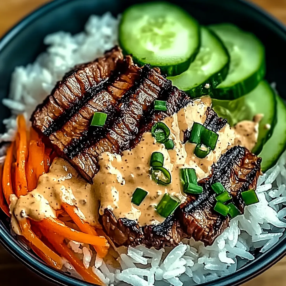 Korean BBQ Steak Rice Bowls with Spicy Cream Sauce Bliss