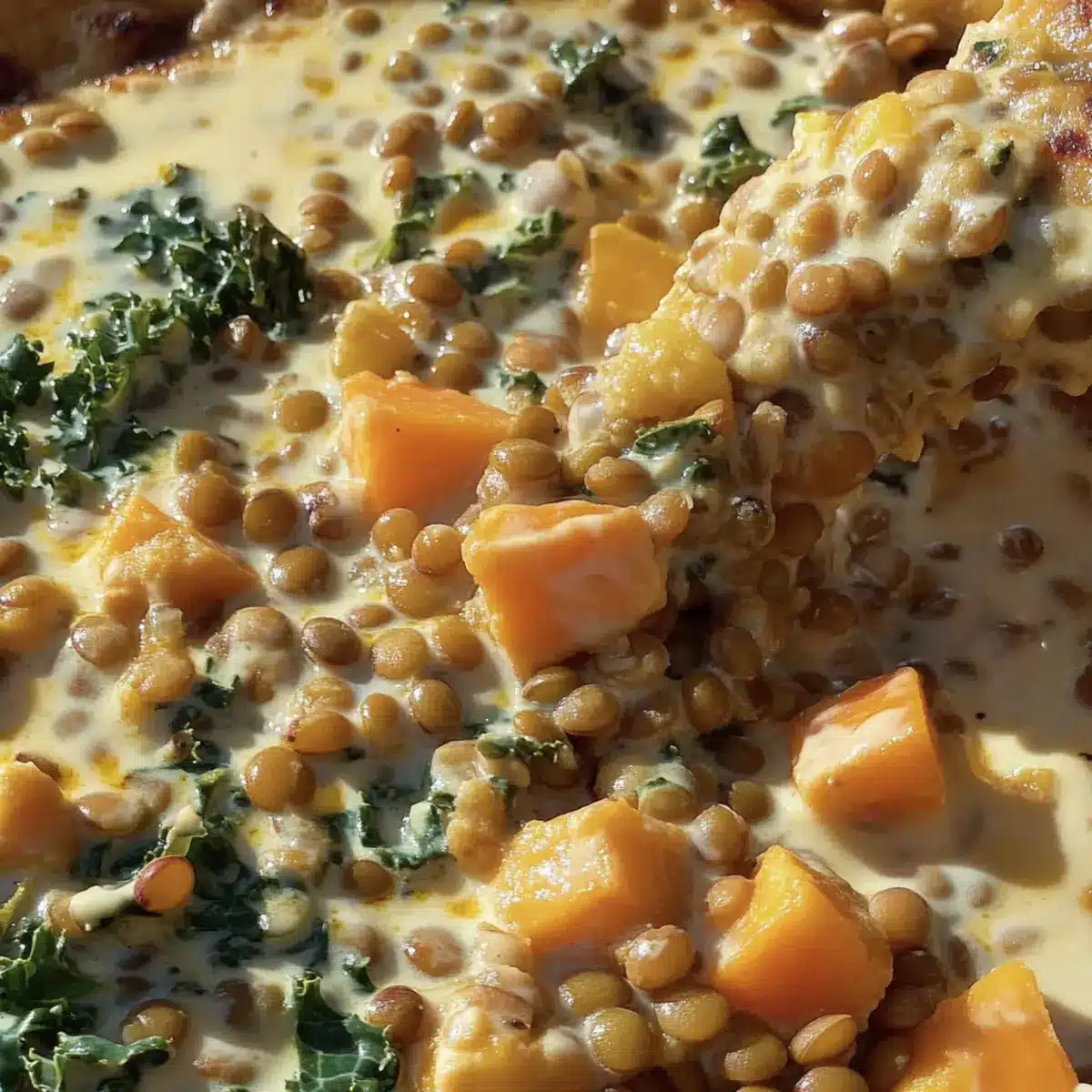 Creamy Lentils, Japanese Sweet Potatoes, + Kale Delight