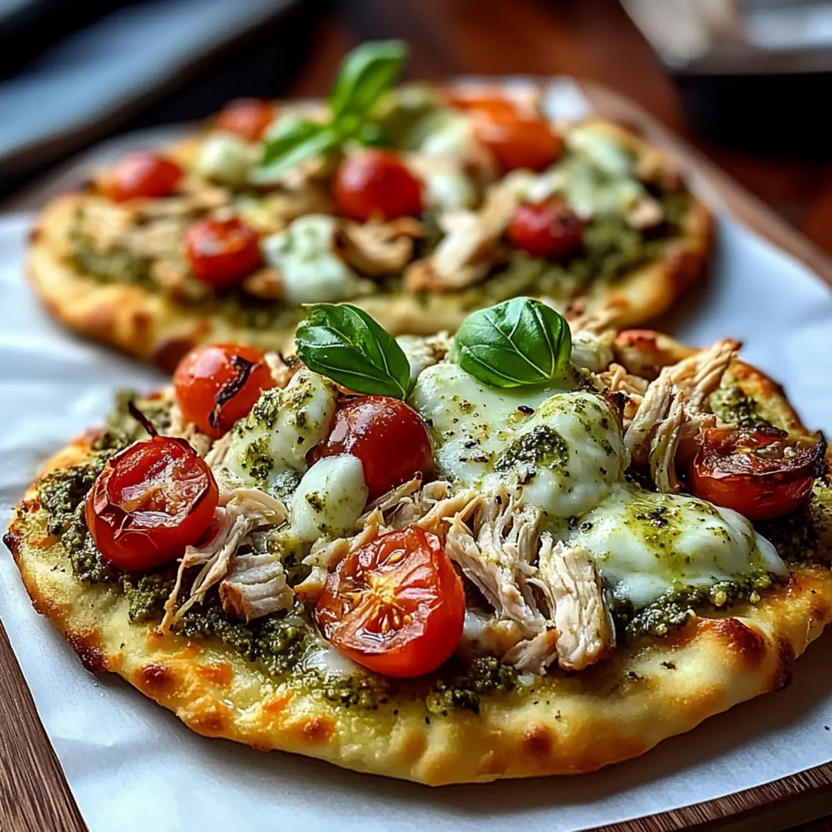 Delicious Pesto Chicken Flatbread with Mozzarella in 20 Minutes