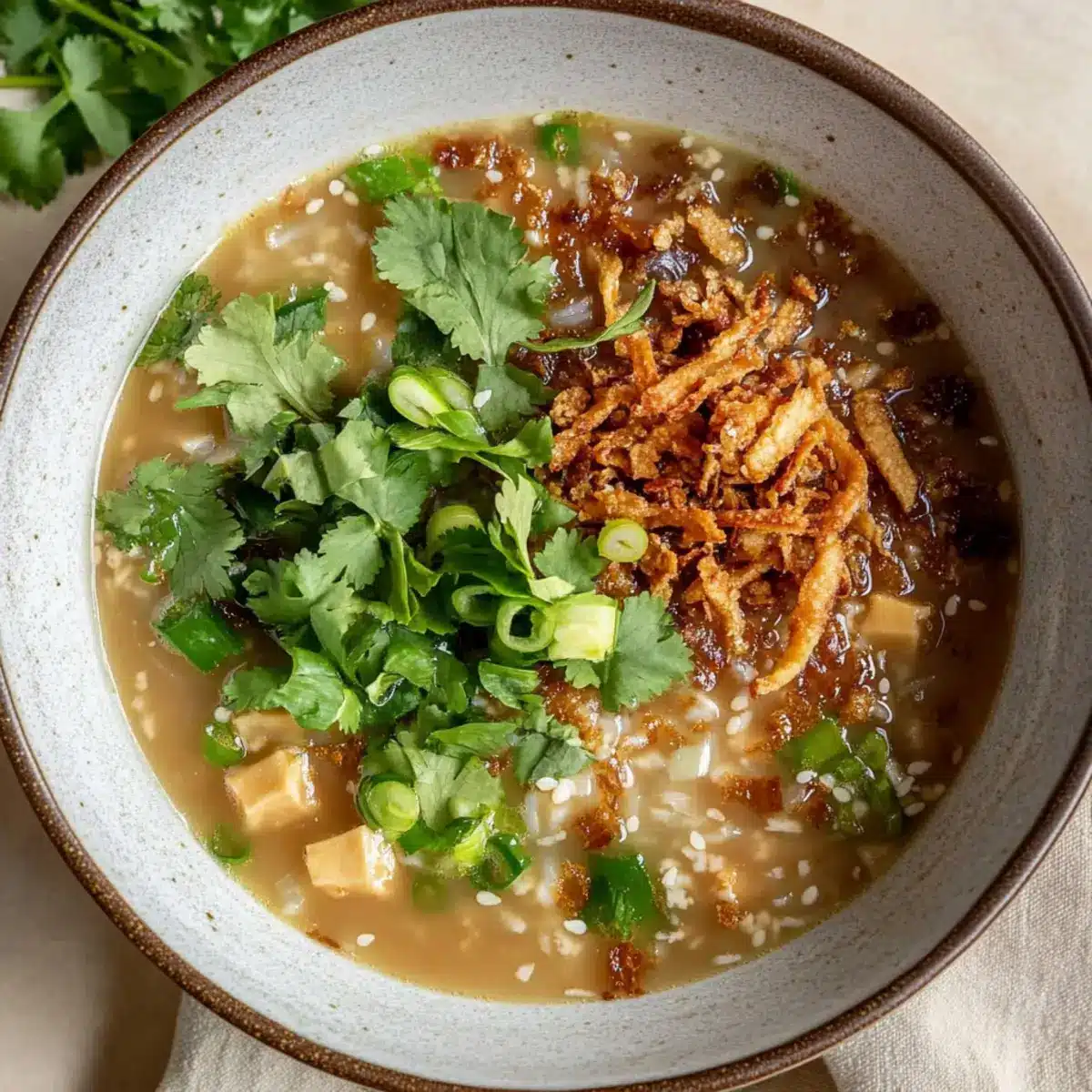 Ginger Miso Brothy Soup with Crispy Shredded Sesame Tofu Bliss