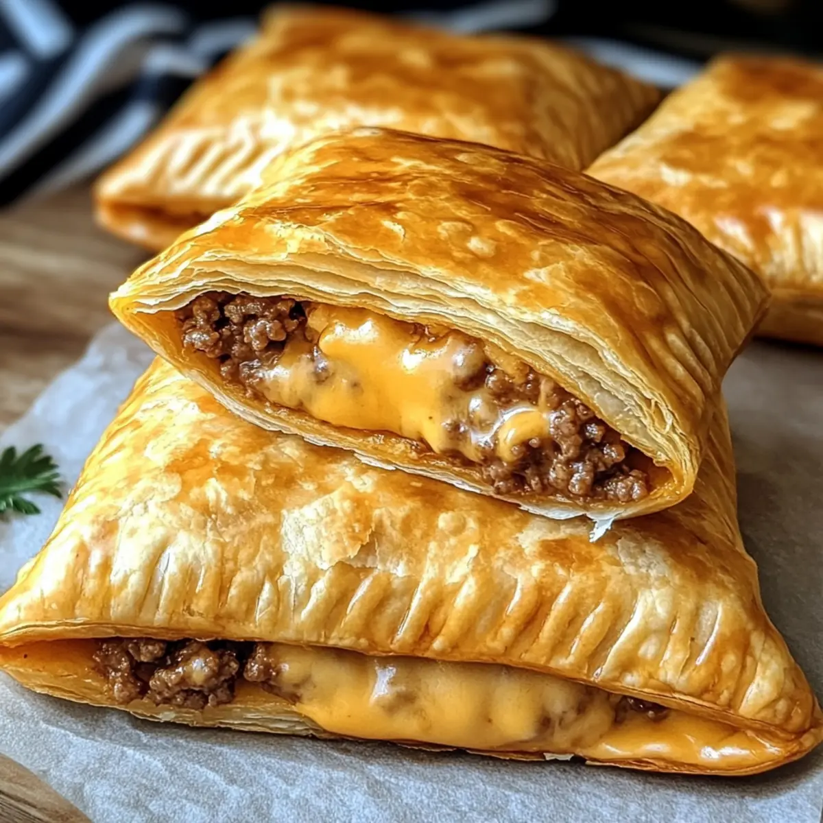 Irresistible Flavor: The combination of seasoned beef and gooey cheese inside a flaky crust makes each bite a savory delight. They’re just as satisfying as a traditional cheeseburger!