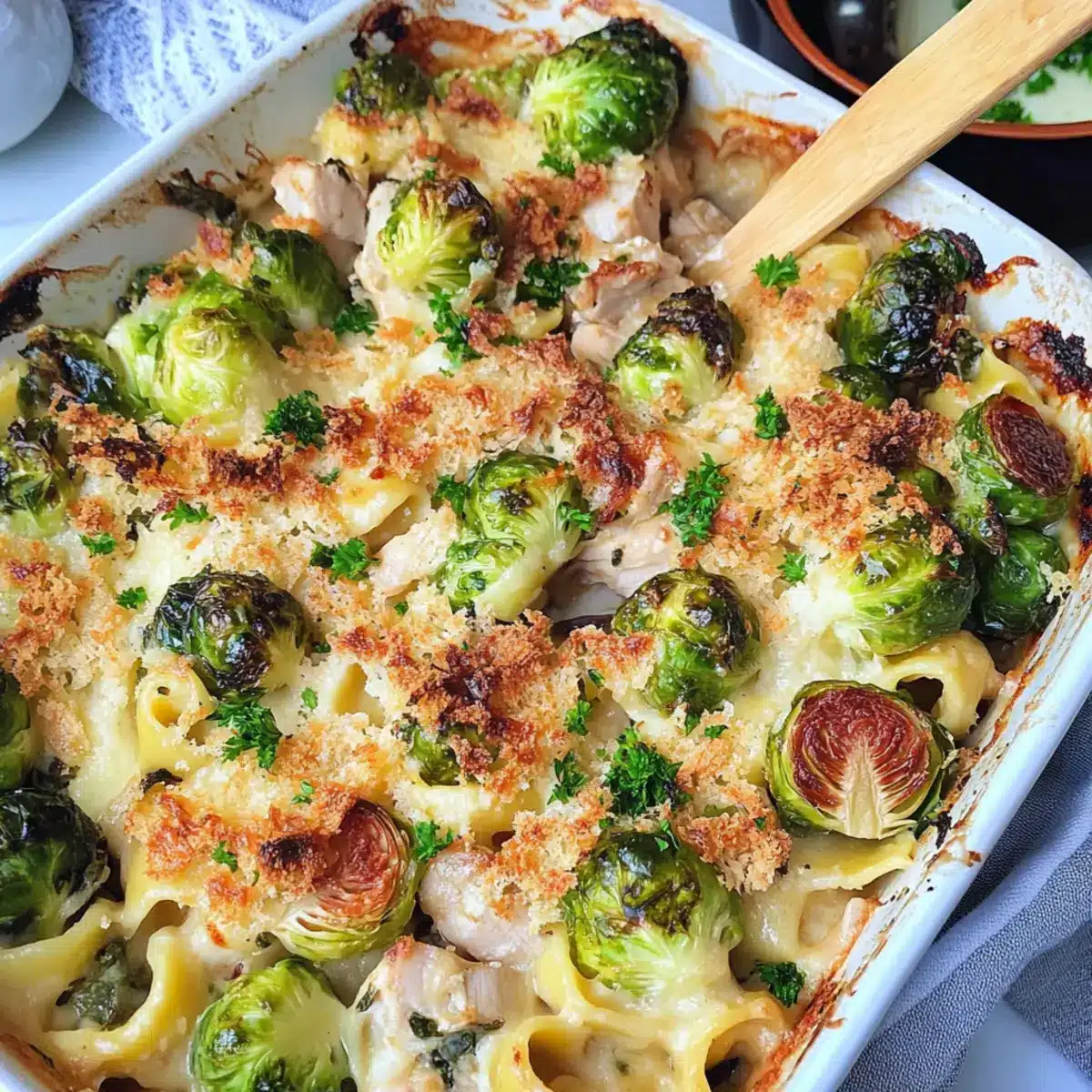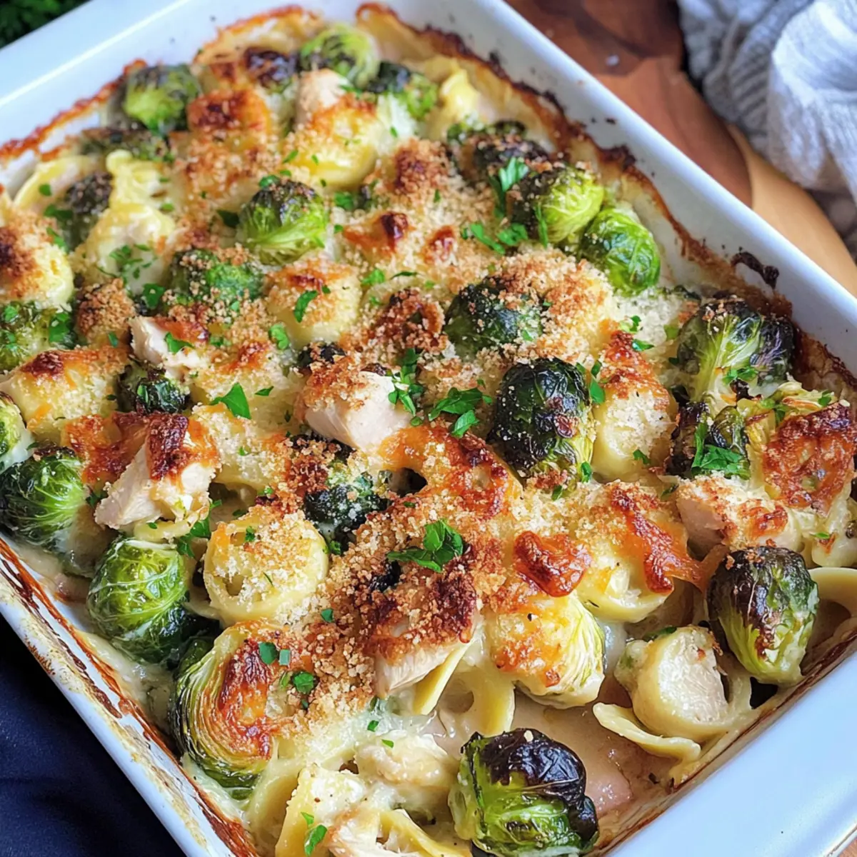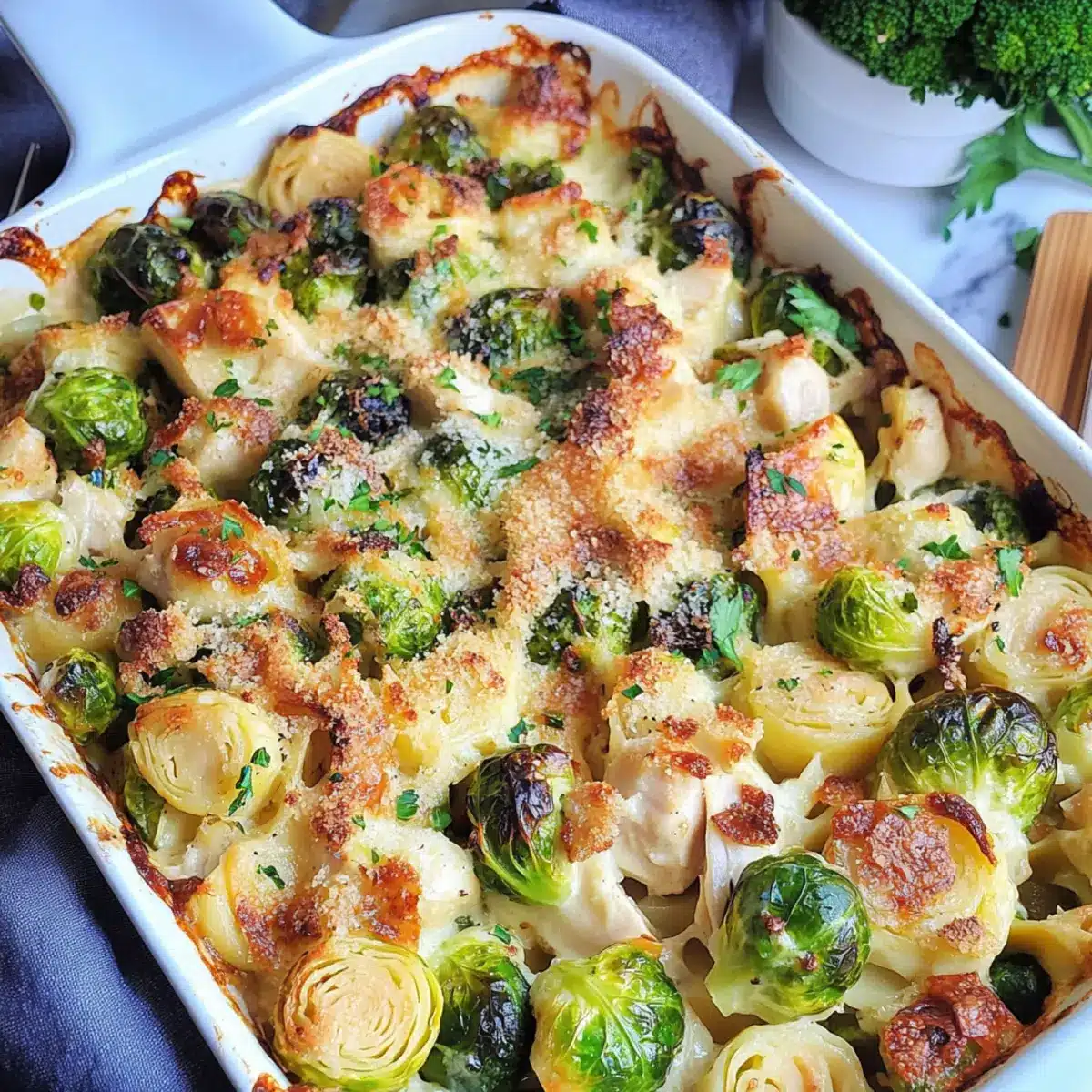 Cheesy Chicken & Brussels Sprouts Pasta Bake for Cozy Nights