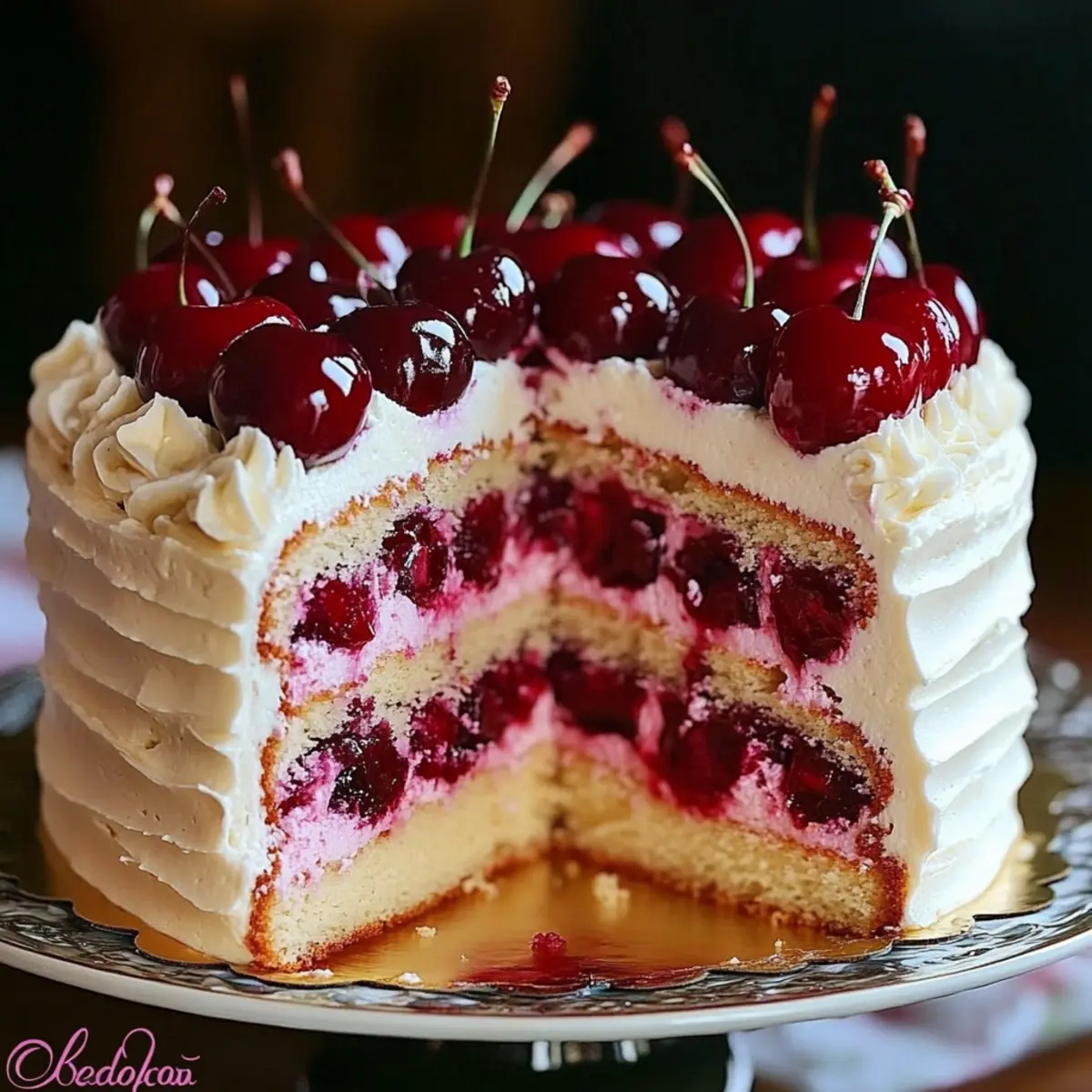 Delightful Layers: The delicate vanilla layers are fluffy and perfectly complement the juicy cherries, creating a harmonious balance of flavor.