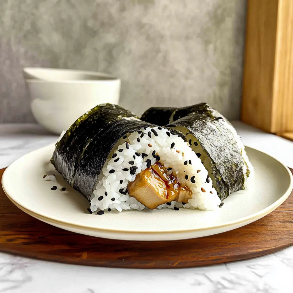 You can get creative with your Chicken Onigiri by incorporating various fillings! For a spicy twist, add kimchi or jalapeños. Alternatively, for a vegetarian option, replace the chicken with seasoned tofu or sautéed mushrooms. The versatility of onigiri allows you to tailor it to your taste preferences and dietary needs.
