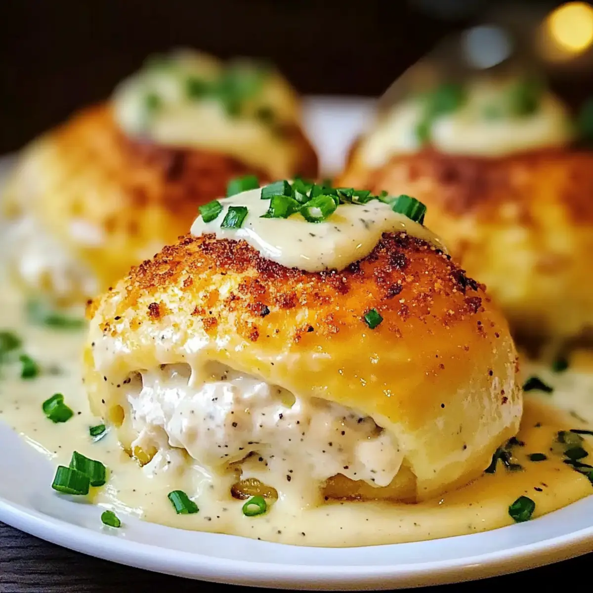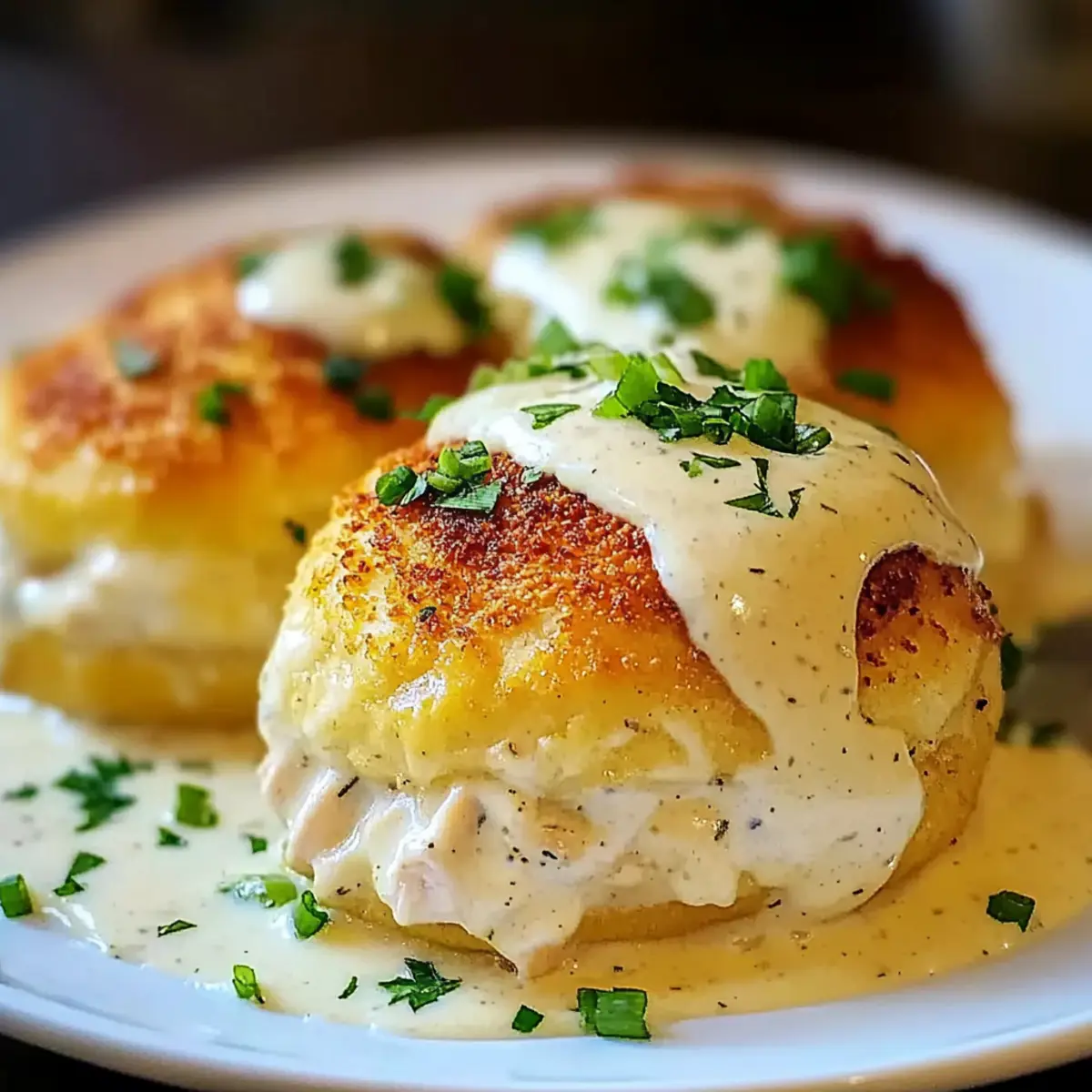 Comforting Chicken Pillows with Creamy Parmesan Sauce Delight