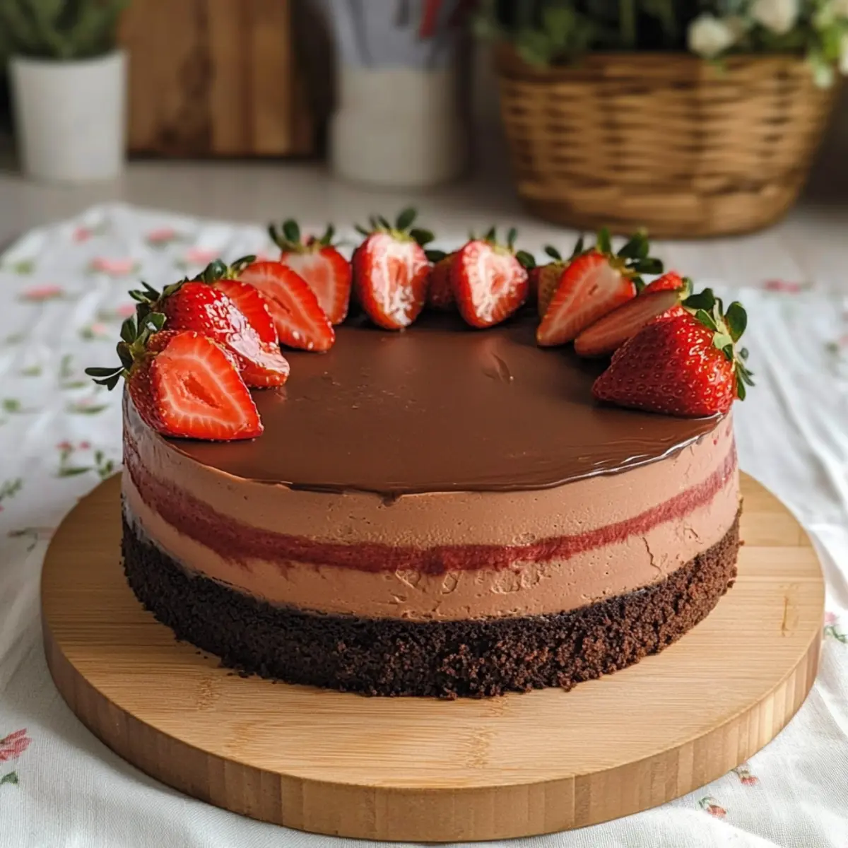 Once everything is set, gently remove the sides of the springform pan. Decorate the top of your chocolate mousse cake with additional fresh strawberries to add a pop of color. Use a hot knife for cleaner cuts and serve chilled slices to impress everyone at your gathering with this elegant dessert.