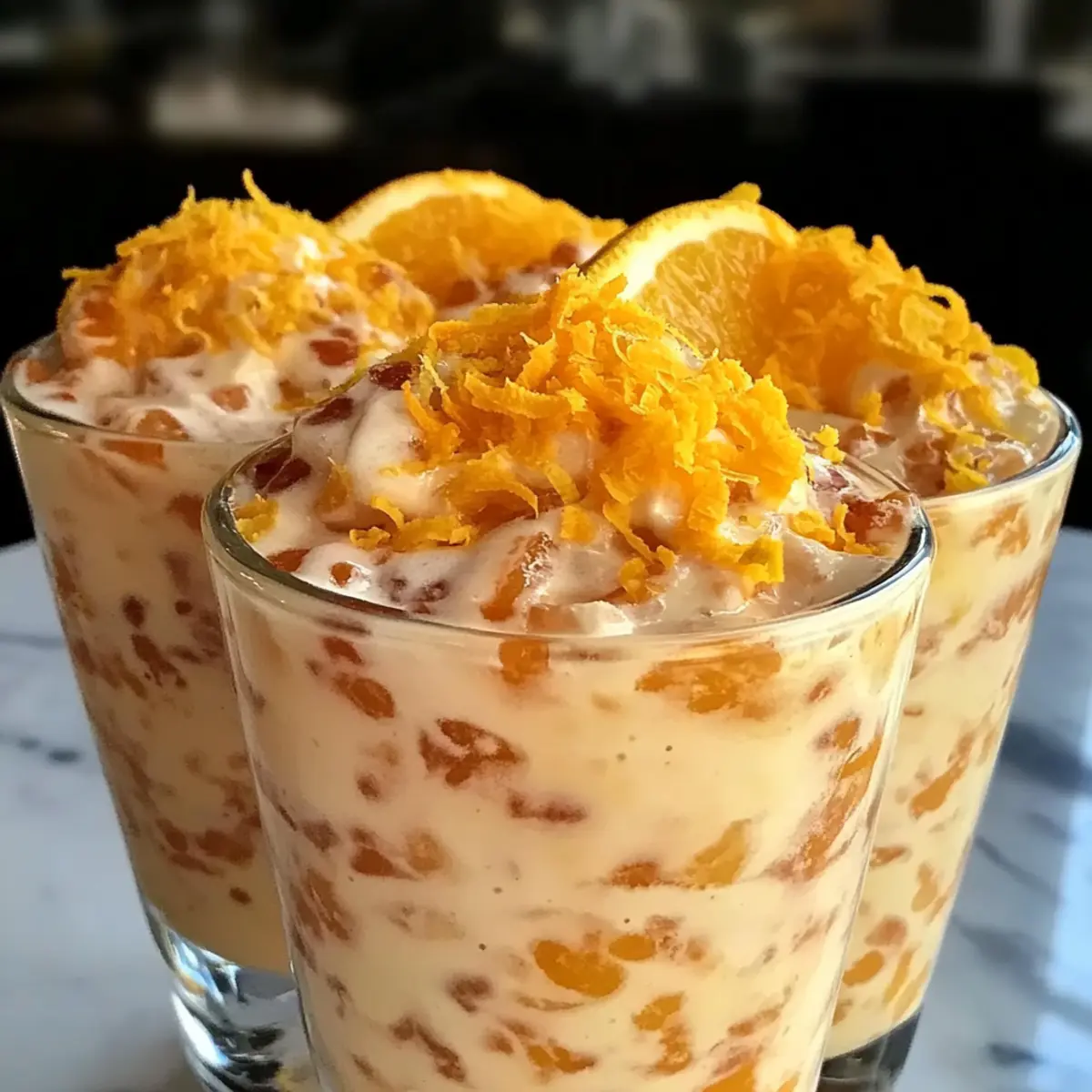 - Serve: Stir gently, then spoon into glasses or bowls. Garnish with extra orange zest or a slice of orange.