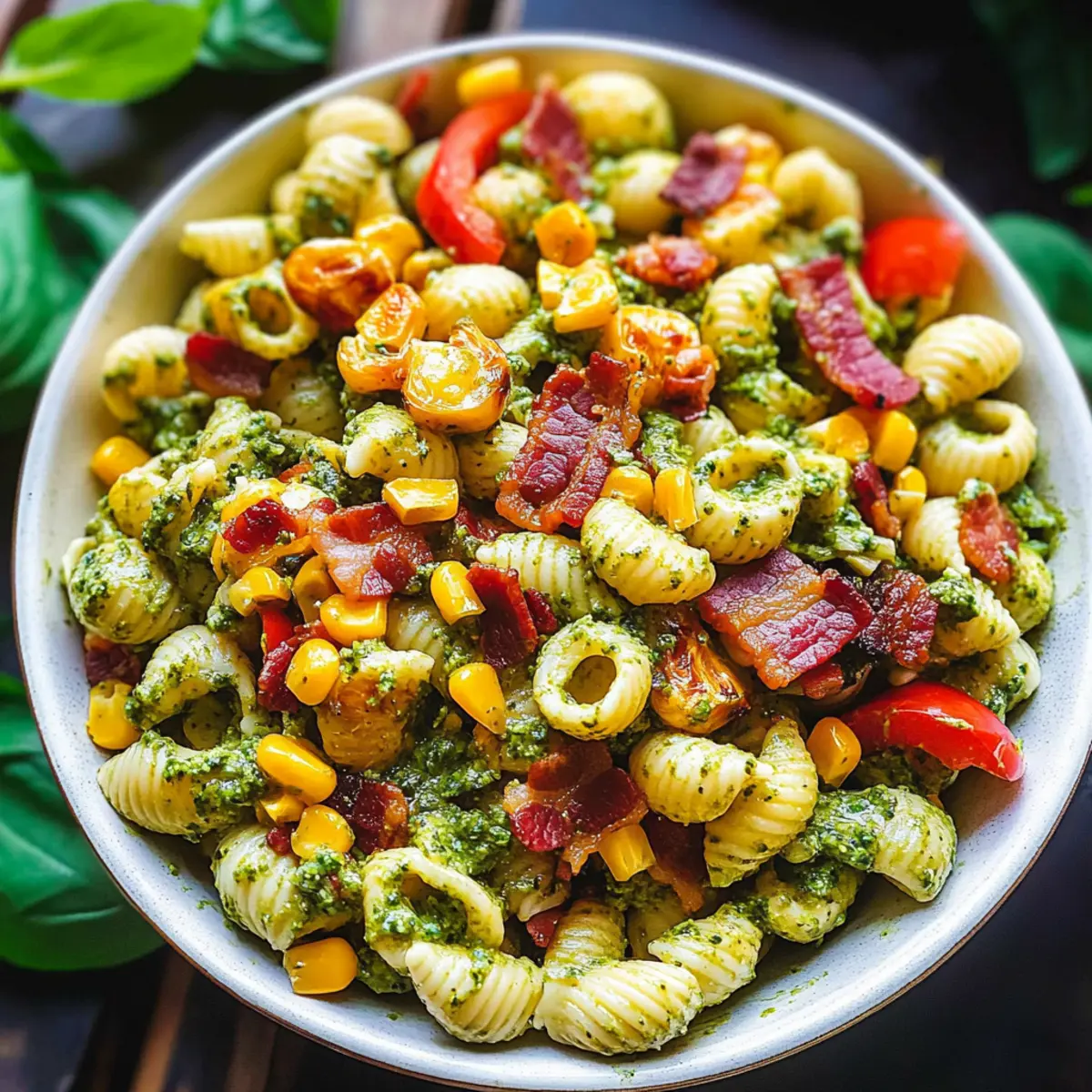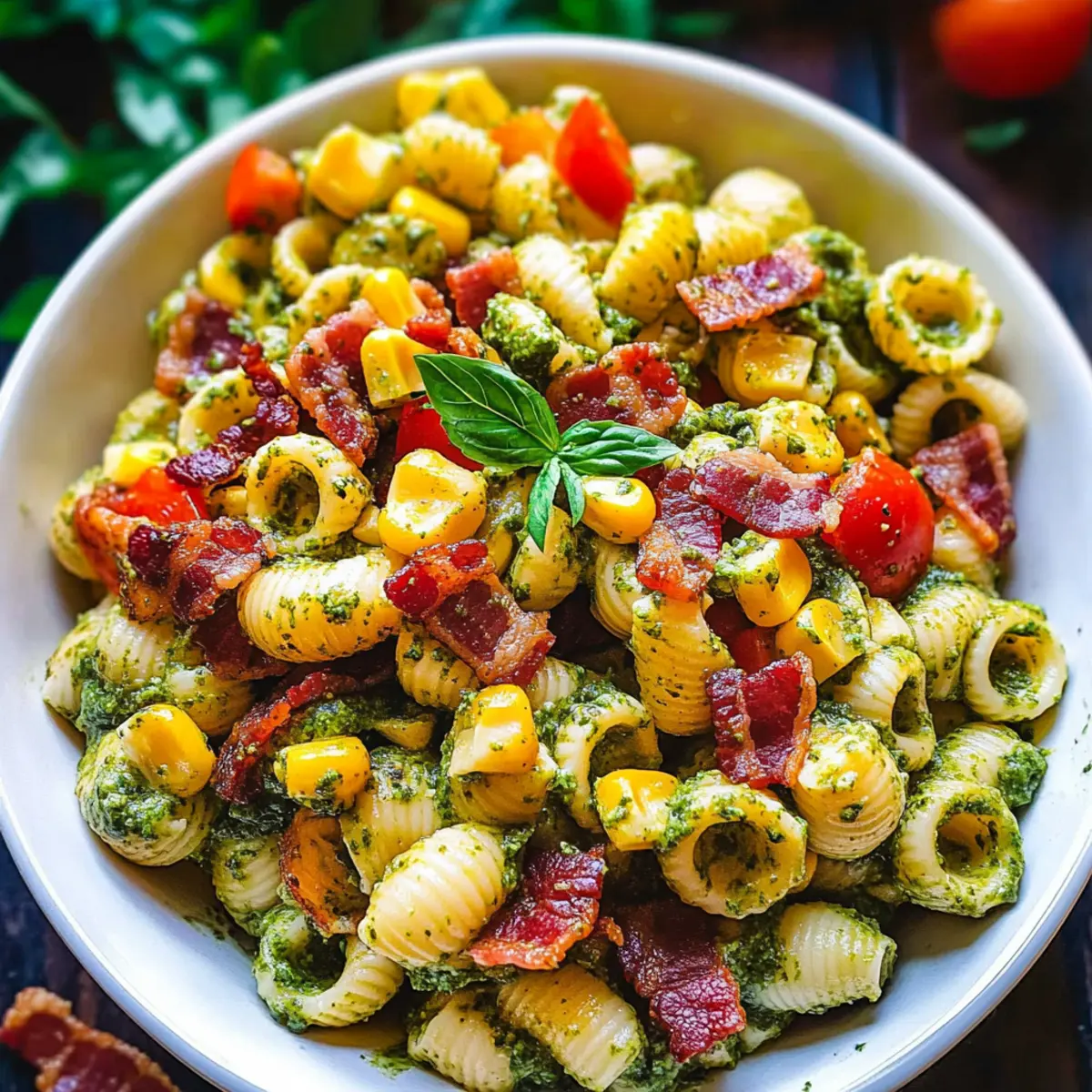 “Can you feel the summer breeze? It’s the perfect time for light, vibrant dishes that brighten up any meal, and this Corn Pasta Salad with Bacon and Creamy Pesto Dressing fits the bill beautifully. In just 30 minutes, you can whip up a colorful ensemble that combines sweet corn, crispy bacon, and a creamy dressing everyone will love. What’s more, it’s adaptable—easily customize it with gluten-free pasta or throw in some juicy cherry tomatoes for an extra burst of flavor. Whether you’re prepping for a backyard barbecue or need a refreshing lunch, this crowd-pleaser is sure to impress. Are you ready to dive into the recipe and make your summer meals unforgettable?”