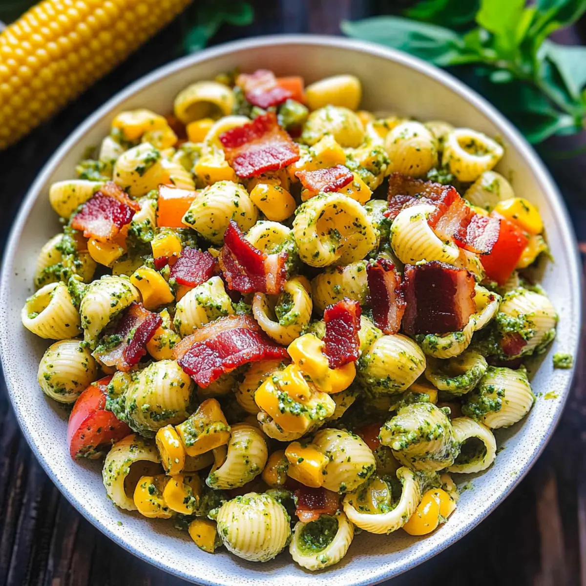 Crowd-Pleasing Flavor: The combination of sweet corn, crispy bacon, and creamy pesto dressing creates a delightful taste that everyone will love.