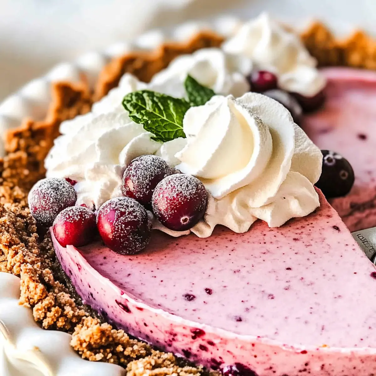 Once set, remove the pie from the refrigerator and garnish the top with dollops of whipped topping. Scatter sugared cranberries over the mousse for a festive look and add fresh mint leaves for a pop of color. Slice the cranberry mousse pie and serve to your eager guests, enjoying the light and fluffy texture as they savor its tart sweetness.