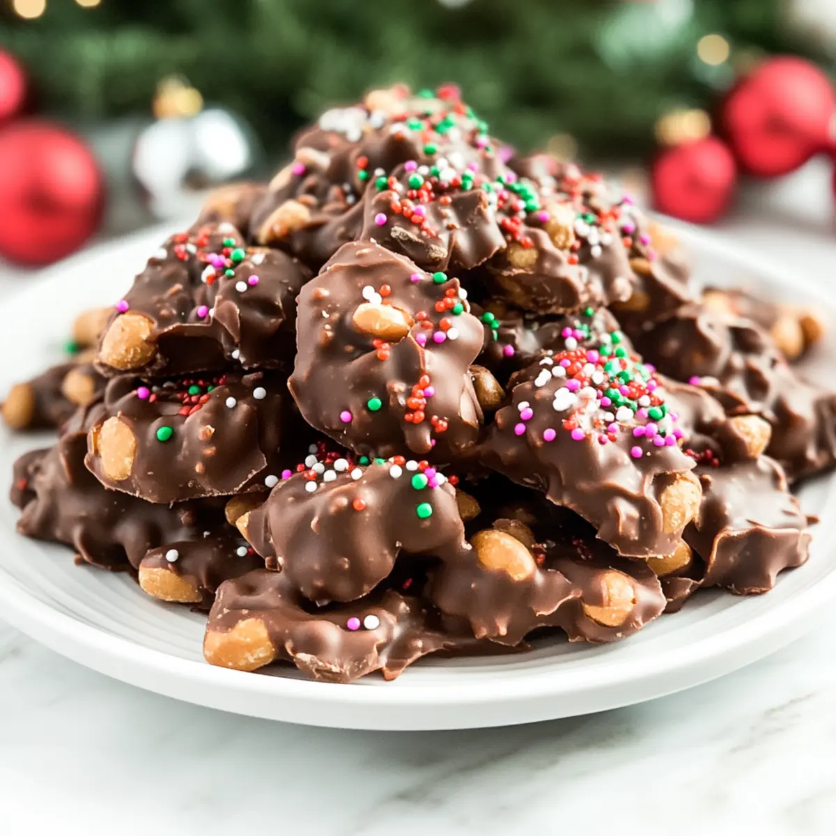 Using a spoon, scoop heaping tablespoons of the mixture and place them onto your prepared baking sheets. Work quickly to form clusters, as this will help the chocolate hold its shape. Feel free to sprinkle some festive sprinkles on top for an extra cheerful touch!