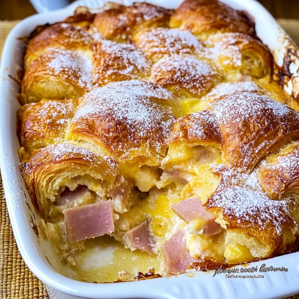 Comforting and Indulgent: This casserole combines the buttery richness of croissants with savory ham and melted cheese, transforming a simple breakfast into a luxurious feast.