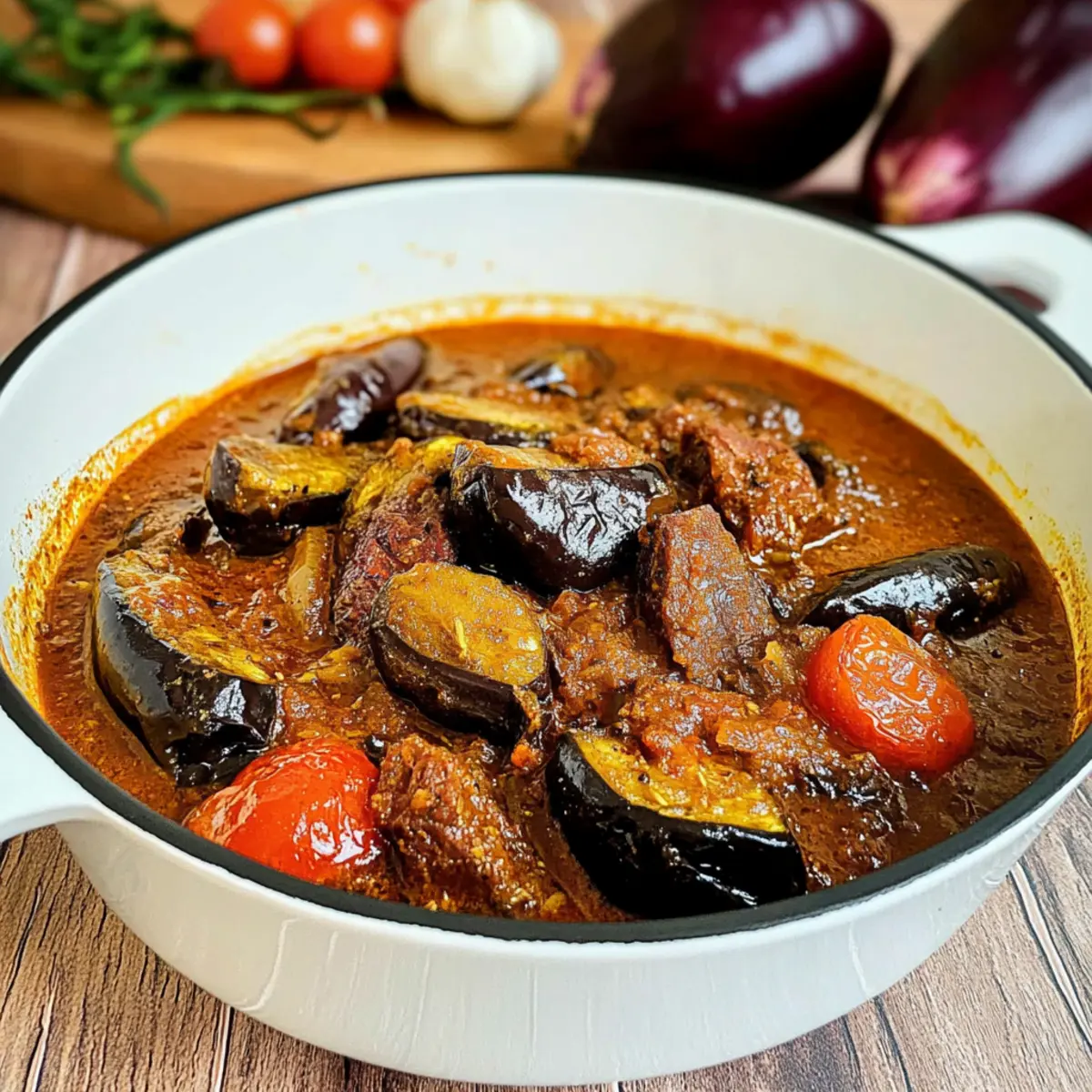 Even Cooking: Make sure to cut the meat and eggplant into uniform pieces. This ensures they cook evenly throughout the stew, enhancing both texture and taste.
