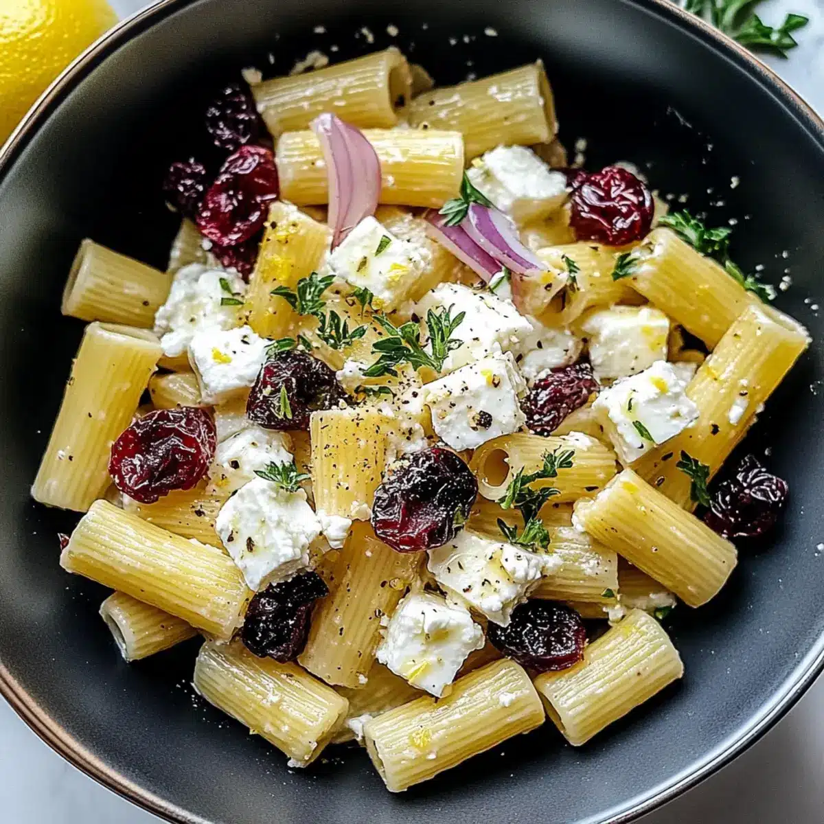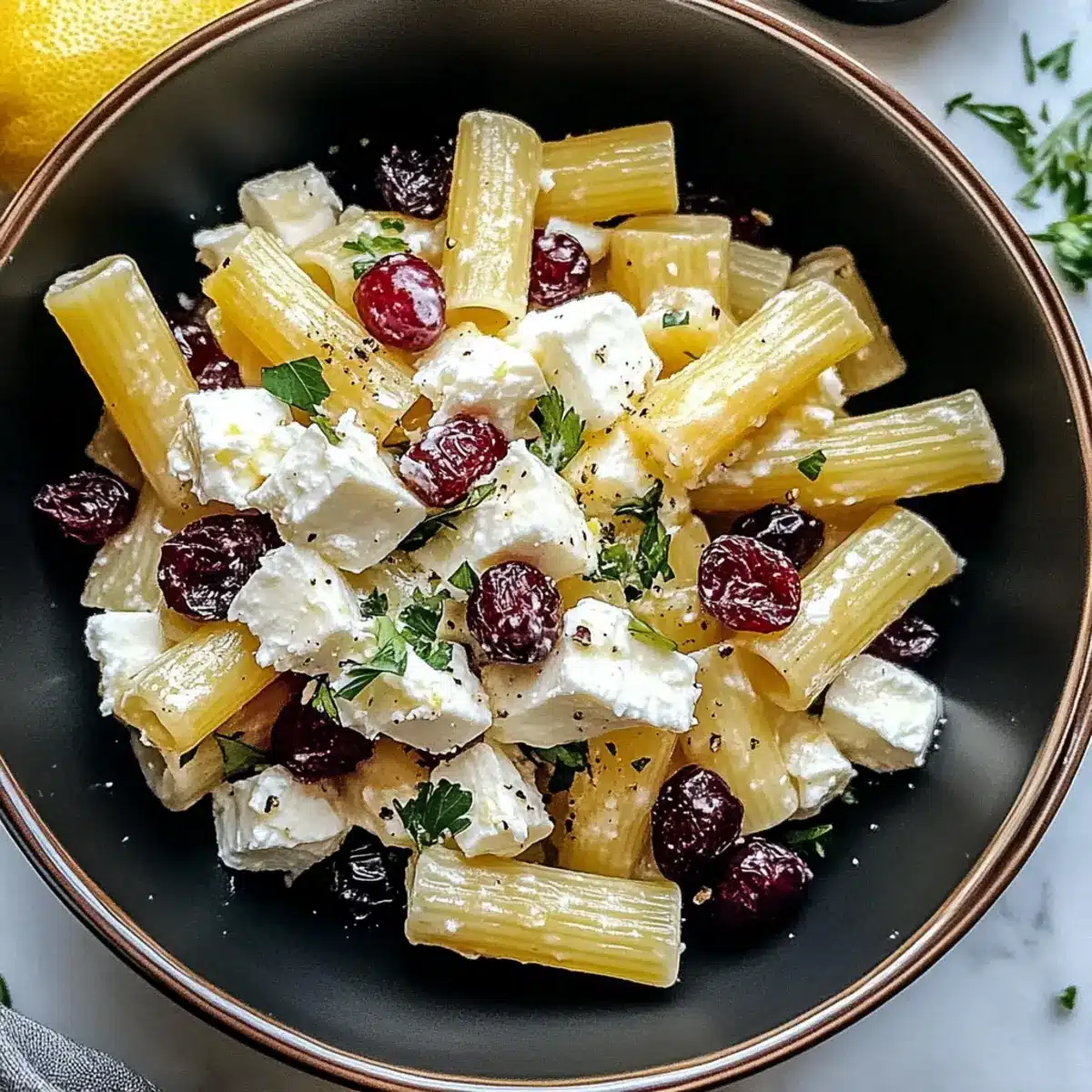 Feta & Cranberry Rigatoni Salad with Zesty Lemon Vinaigrette