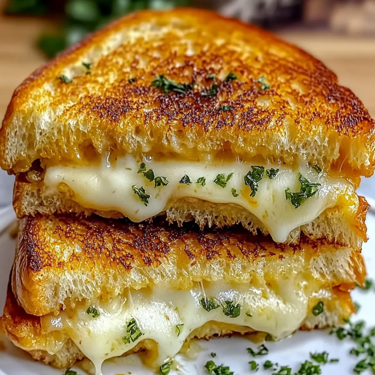 These Garlic Bread Grilled Cheese sandwiches are perfect for meal prep enthusiasts! You can mix the garlic butter and spread it on the bread up to 24 hours in advance, storing the slices in an airtight container in the refrigerator to maintain freshness. Additionally, you can shred the cheese and combine it, placing it in a separate container. When you’re ready to enjoy, simply assemble the sandwiches, cooking them on a skillet over low heat to achieve that crispy exterior and gooey cheese center—just like fresh! By prepping in advance, you’ll save time during busy weeknights while still indulging in this comforting, homemade delight.