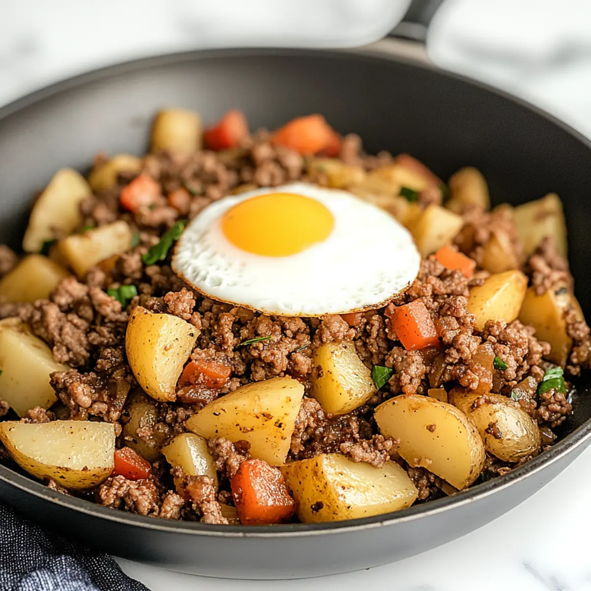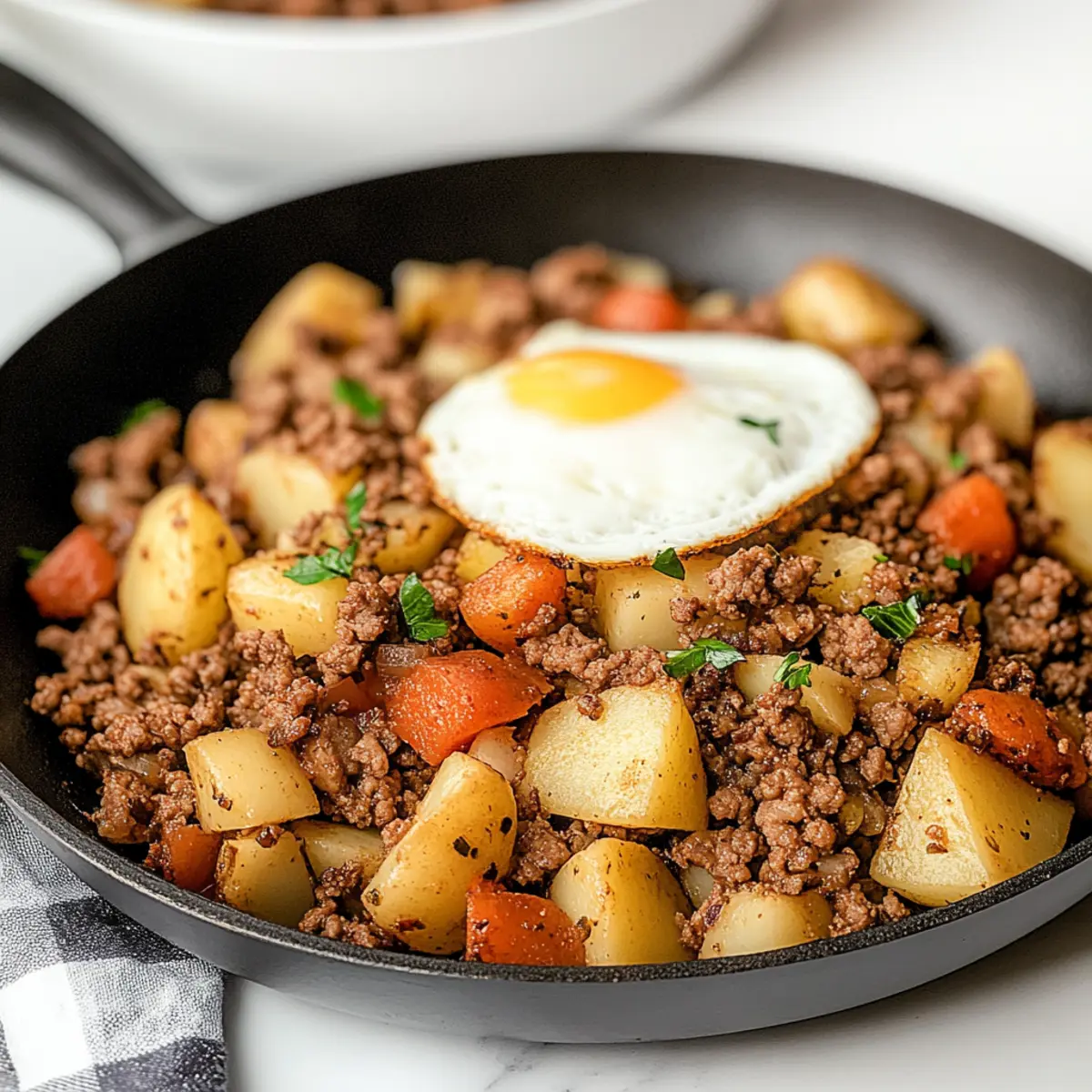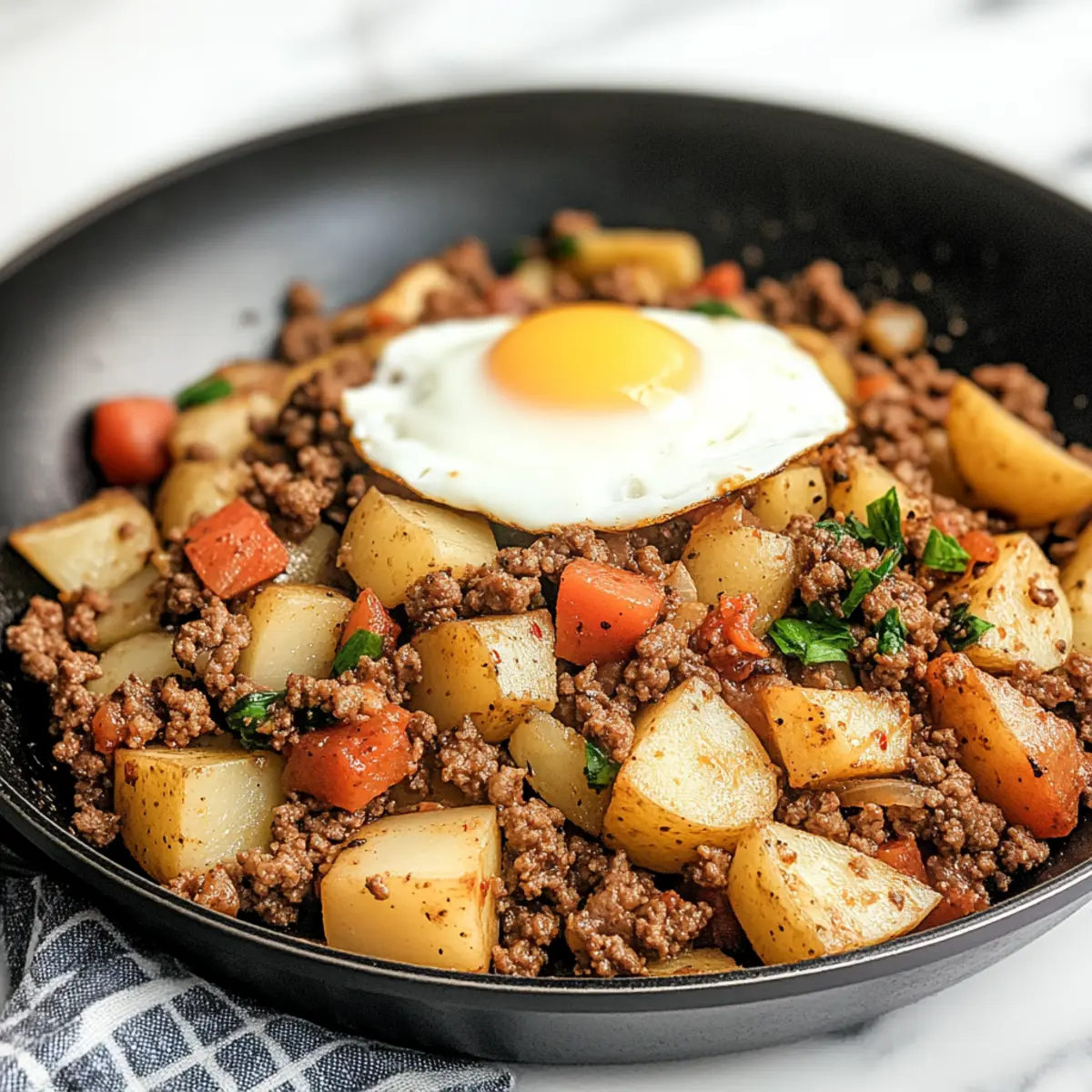 Once everything is heated through and aromatic, remove the skillet from the heat. If desired, serve hot, optionally topped with a fried egg and a sprinkle of fresh parsley. This hearty ground lamb with potatoes skillet promises warmth and satisfaction, ready to cozy up your dinner table!