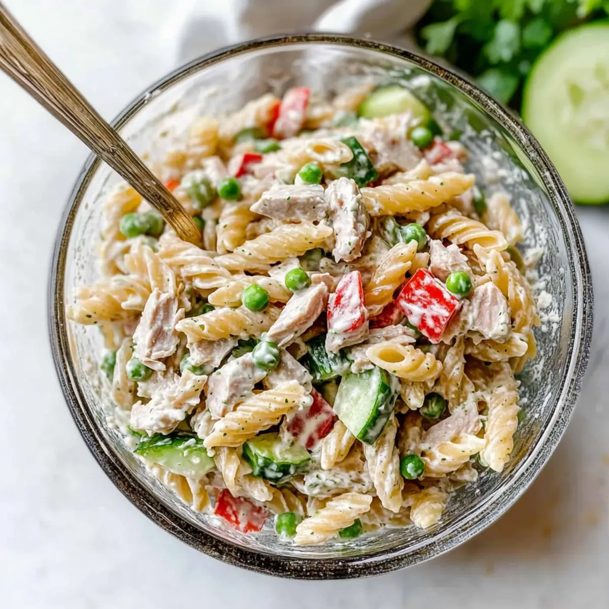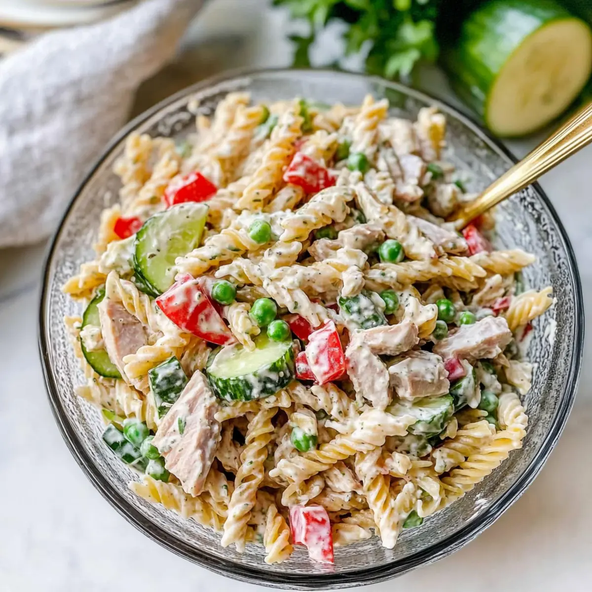 Creamy Goodness: The Greek yogurt dressing adds a unique creaminess that elevates traditional pasta salads.