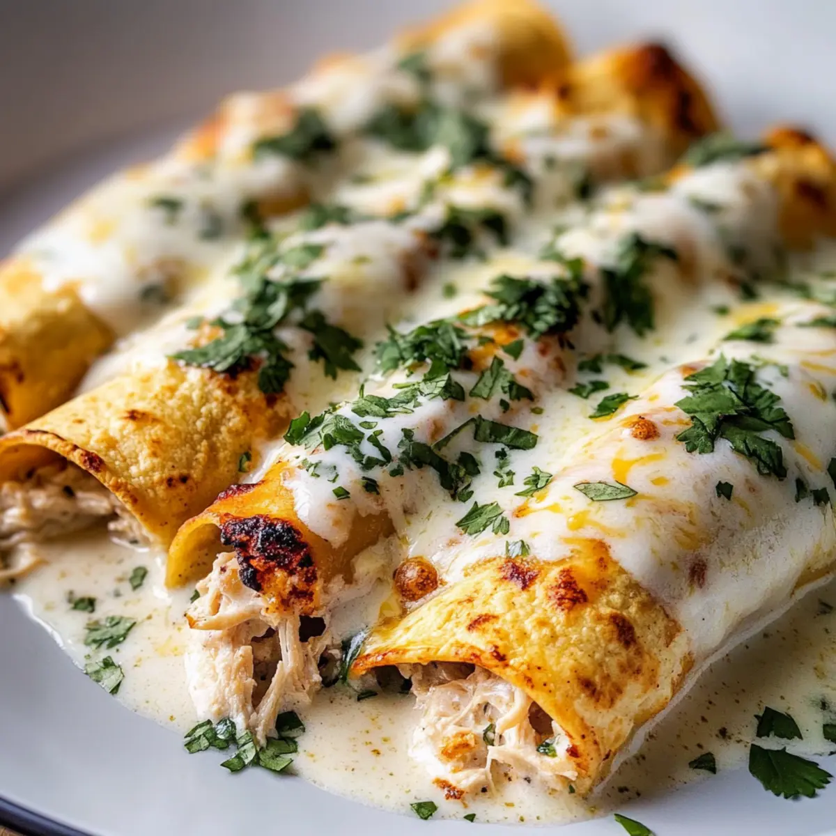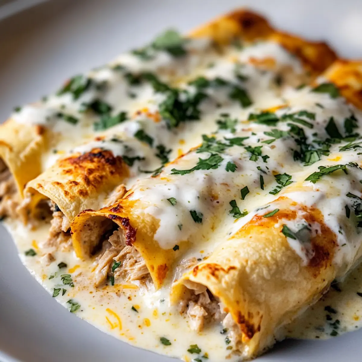 Spread a small layer of the white sauce in the bottom of the greased baking dish. Take your warm tortillas and place a generous spoonful of the chicken mixture in the center. Roll each tortilla tightly and place them seam-side down in the dish, snugging them together for a neat presentation.