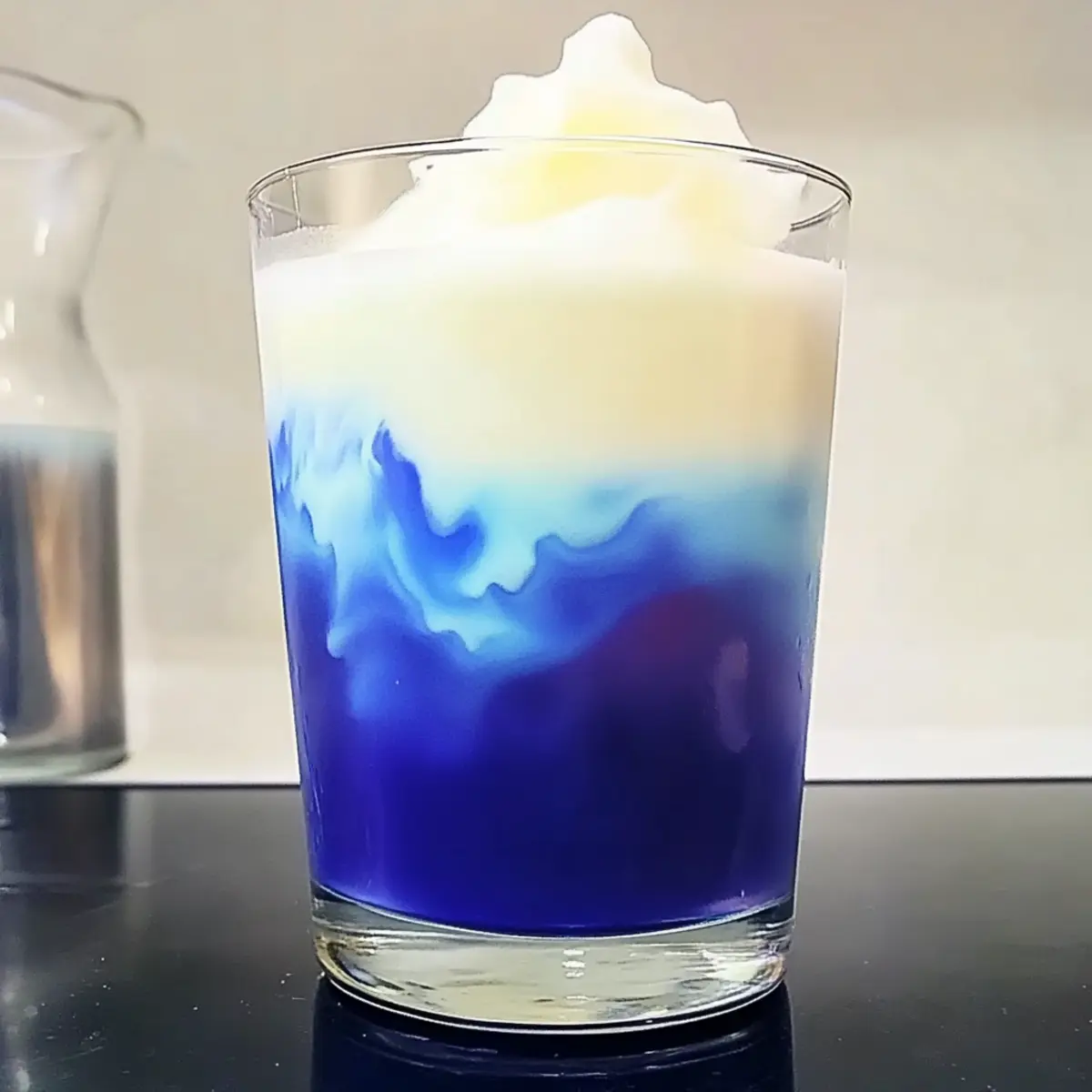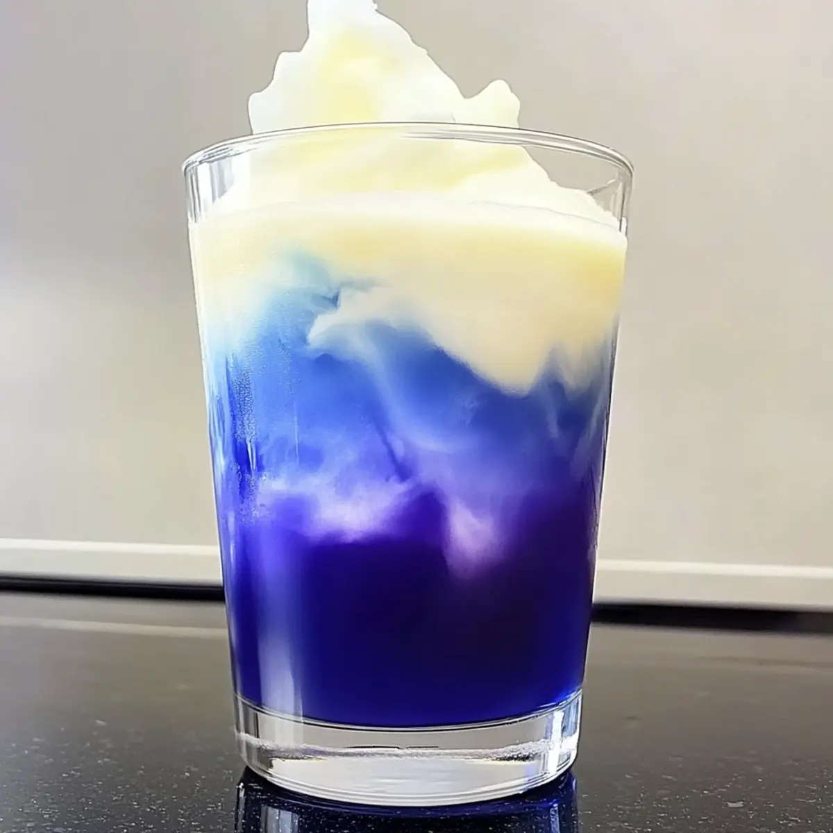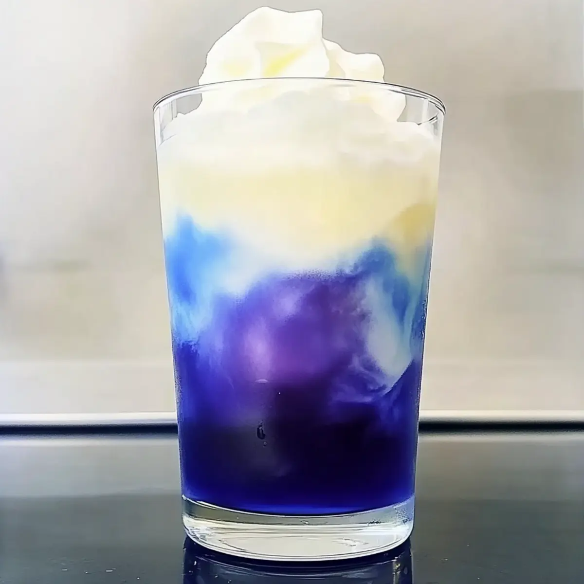 - Spoon or pour the vanilla cold foam on top of the blue tea to create a layered effect.