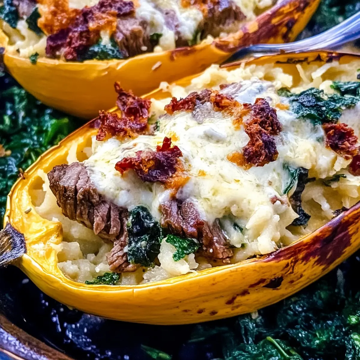 As I entered the kitchen, the tantalizing aroma of sizzling steak filled the air, immediately captivating my senses. Today, I’m sharing a delightful twist that transforms a classic Italian favorite into a keto-friendly masterpiece: Keto Low Carb Steak Gorgonzola Alfredo Spaghetti Squash. This dish perfectly marries rich and creamy tastes, allowing you to indulge without the carbs typically found in pasta. Using spaghetti squash as a nutritious base, not only is this meal a scrumptious alternative, but it also packs a protein punch, making it an ultimate crowd-pleaser for your family or guests. Whether you’re on a keto journey or simply seeking a healthier way to enjoy your favorite flavors, this recipe is bound to become a staple in your weeknight rotation. Ready to discover how to craft this satisfying meal that’s both hearty and light? Let’s dive in!