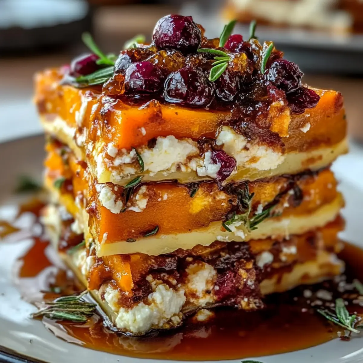 As I sliced through the vibrant layers of this Layered Sweet Potato, Butternut Squash, and Carrot Lasagna, I couldn’t help but marvel at the colors dancing on my cutting board. This dish isn’t just a feast for the eyes; it’s packed with nutritious goodness that will make your kitchen feel like a warm embrace. The blend of sweet potato, butternut squash, and carrots creates a stunning vegetarian centerpiece that’s not only visually appealing but also a quick prep solution for busy weeknights. Plus, the combination of creamy feta, crunchy walnuts, and a glossy cranberry-honey glaze elevates it to a whole new level of deliciousness. Whether you’re hosting a cozy dinner or simply treating yourself, this lasagna will leave everyone craving more. What’s your favorite way to add a pop of color to your meals?