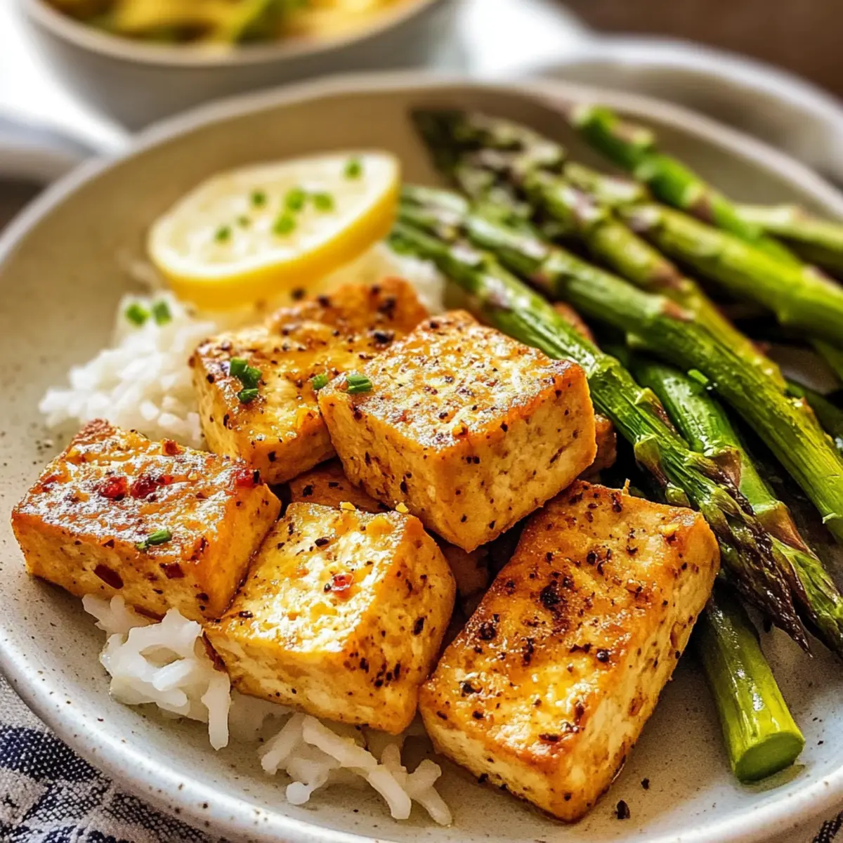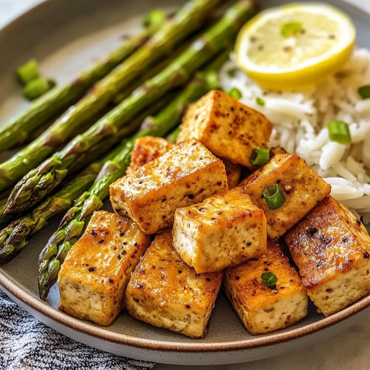 Lemon Pepper Tofu and Asparagus for a Zesty Dinner Delight