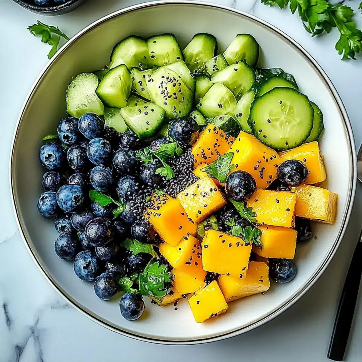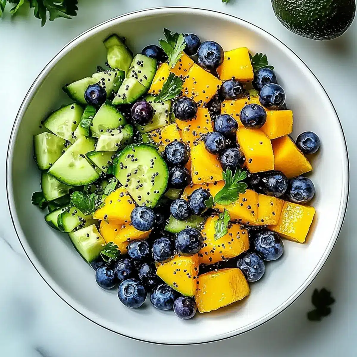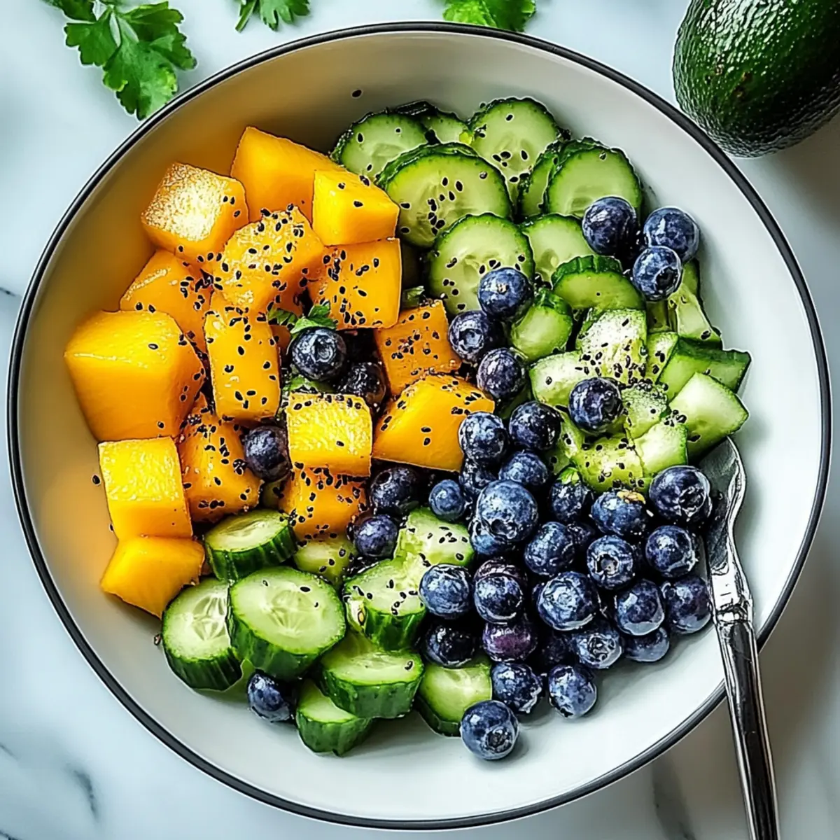 Mango Cucumber Salad with Blueberries and Avocado Bliss