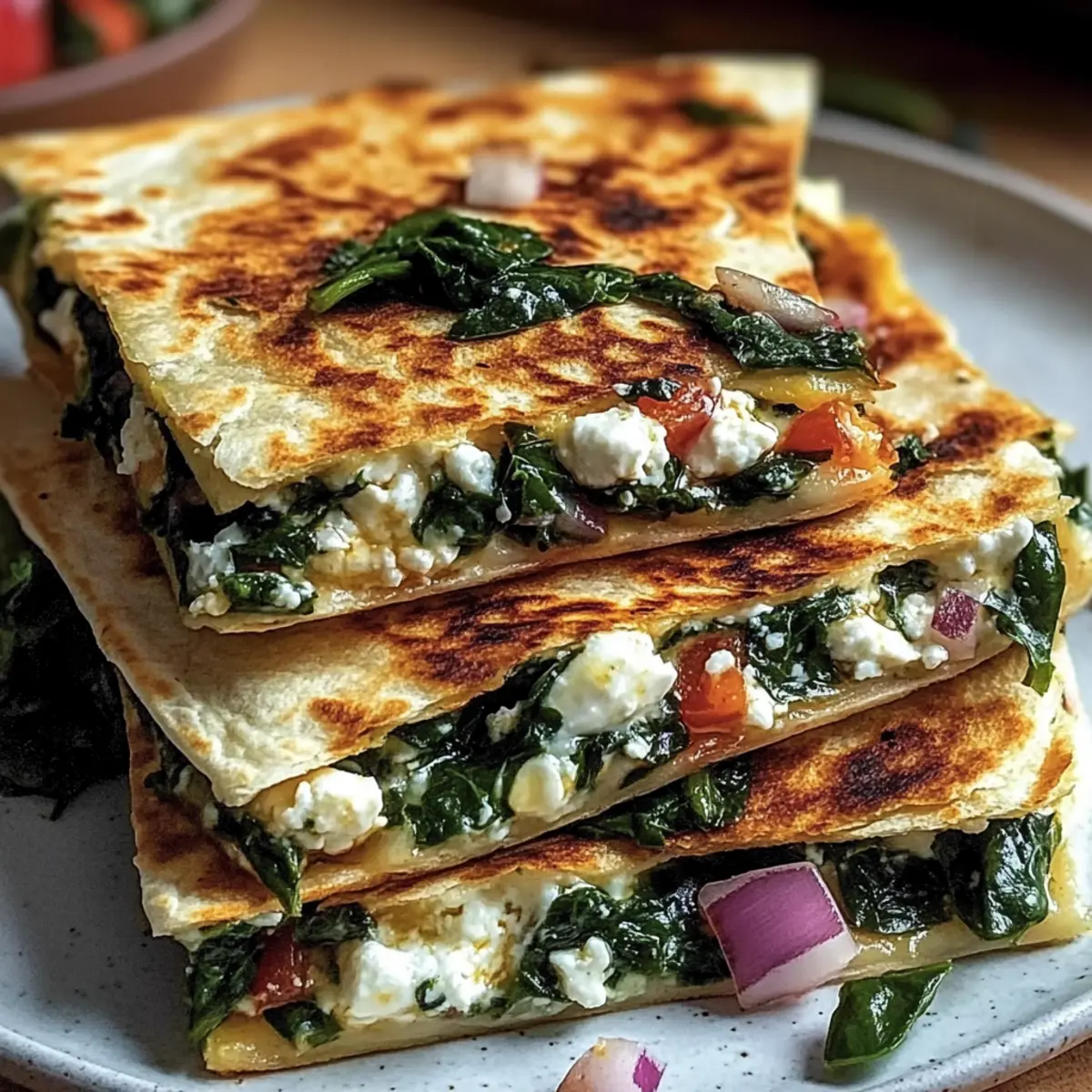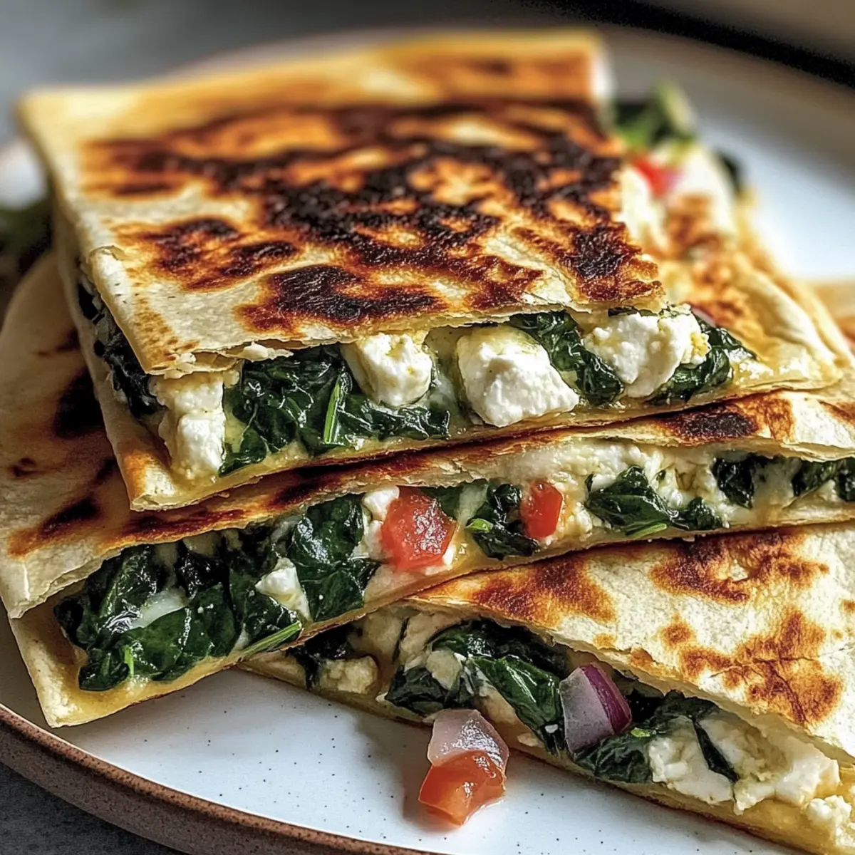 Mediterranean Quesadillas are perfect for meal prep enthusiasts! You can assemble the quesadillas up to 24 hours in advance—just layer the sautéed spinach and onion mixture, feta, and mozzarella onto the tortillas, fold them, and refrigerate in an airtight container. To maintain quality, be sure to place parchment paper between each quesadilla to prevent sticking. If you want to prepare them for even longer, flash freeze the assembled quesadillas, wrapped in foil, for up to 3 months. When ready to serve, cook directly from frozen in a skillet for about 6-8 minutes per side, ensuring they’re just as delicious as when freshly made. This way, you save precious time during busy weeknights!