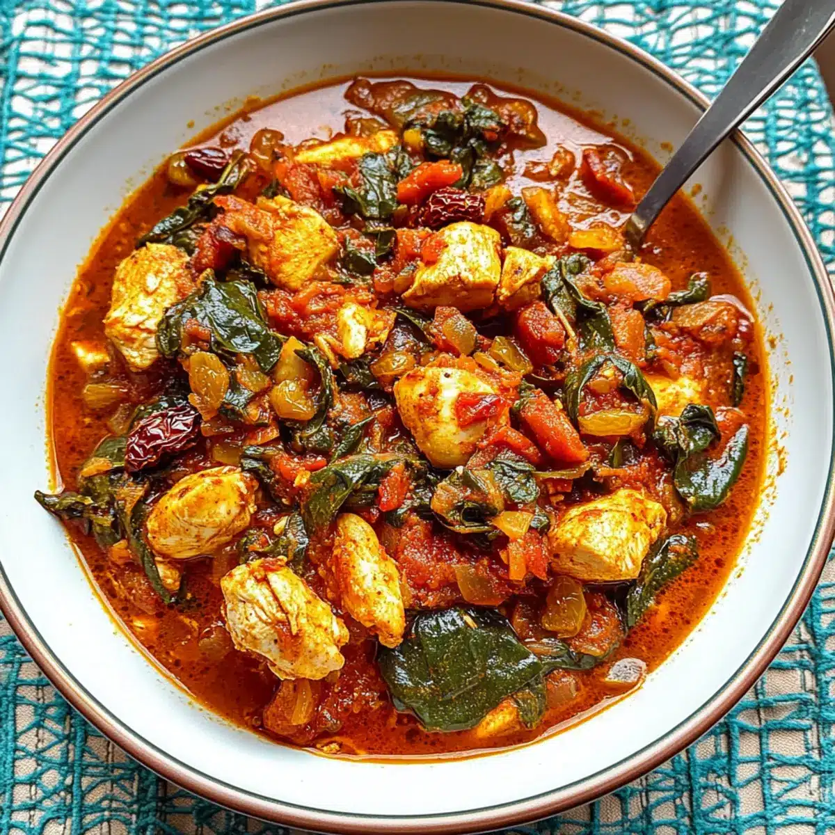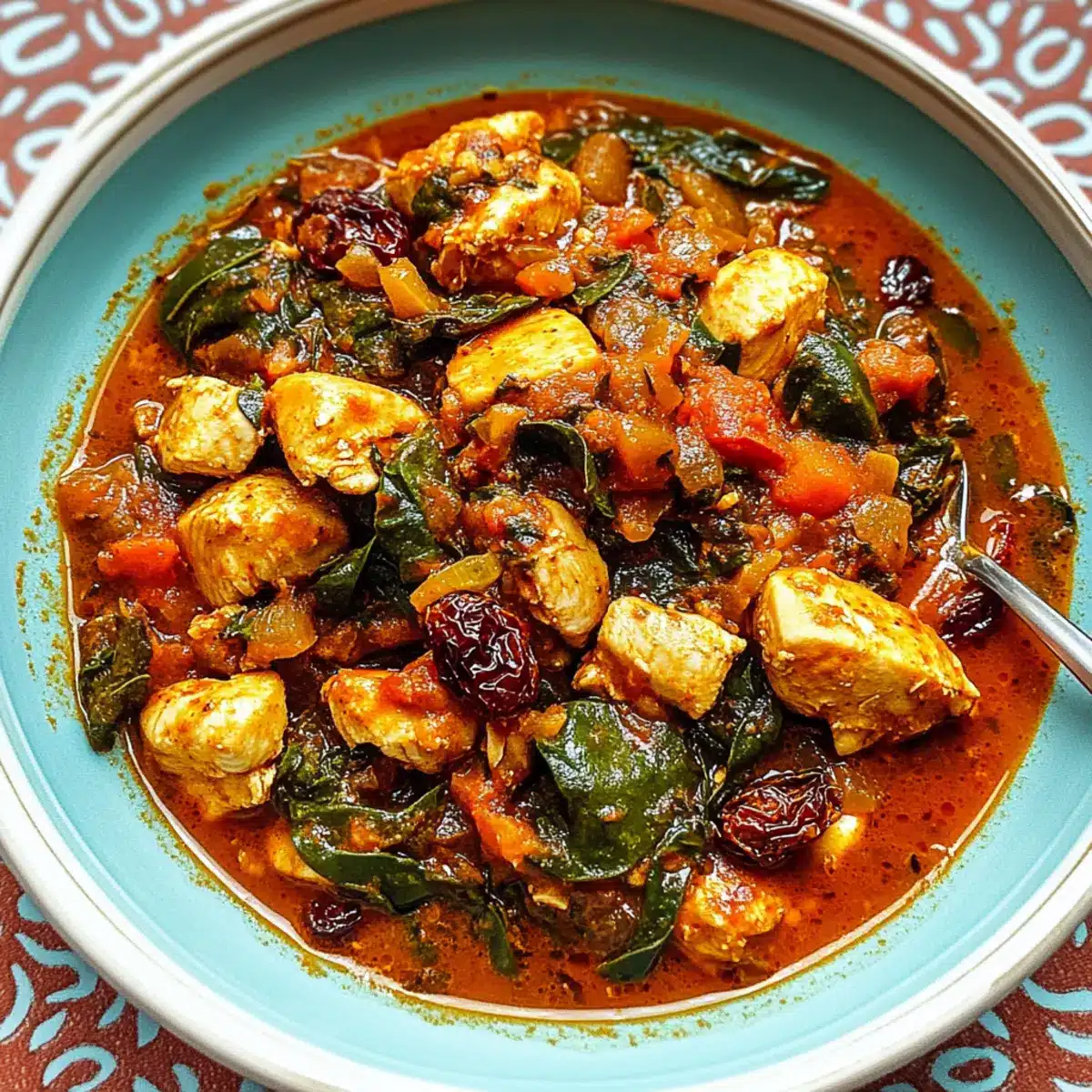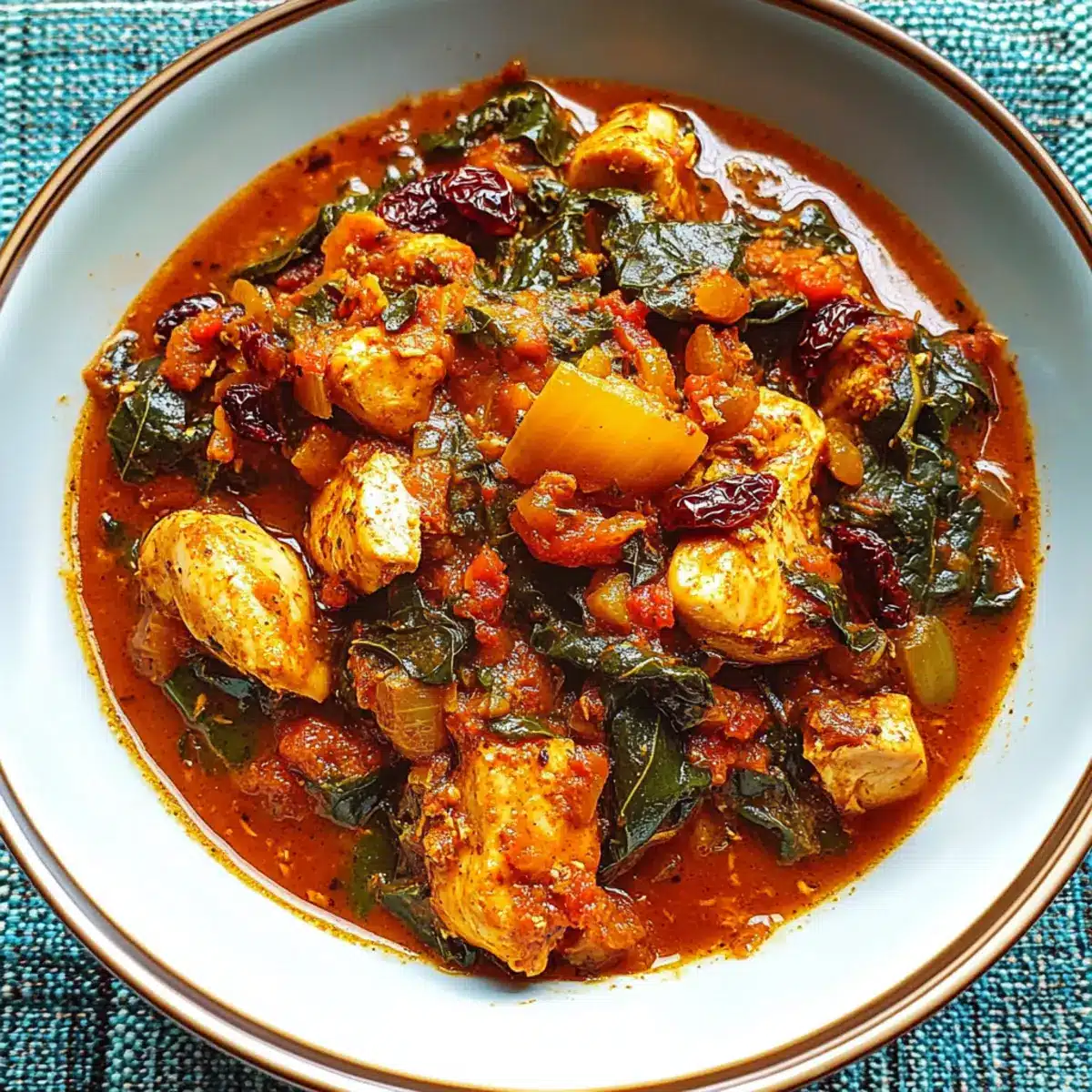 The moment the door swung open, I was instantly wrapped in the warm, inviting aroma of spices coming from my kitchen, like a comforting hug after a long day. That’s exactly what you’ll experience when making this Comforting Moroccan Chicken Stew with Spinach and Raisins. This dish not only celebrates the vibrant flavors of Moroccan cuisine but also promises quick prep, so you can have a satisfying meal ready in no time. Fully gluten-free and paleo-friendly, it’s easy to customize—consider a vegetarian twist with hearty chickpeas if you prefer. Picture tender chicken melded with earthy spices, sweet raisins, and luscious spinach, all simmered to perfection. Curious about how this delightful stew can become a staple in your weekly dinners? Keep reading!