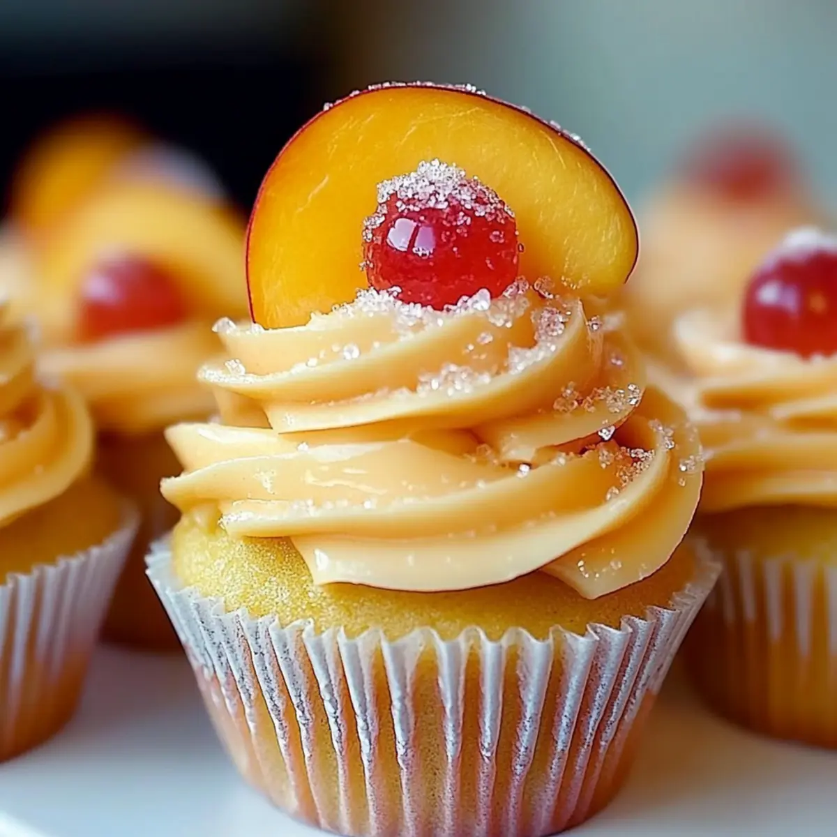 Stunning Presentation: Garnish with fresh peach slices and a sprinkle of sparkling sugar to elevate both the appearance and the fruity flavor of your Peach Bellini Cupcakes!