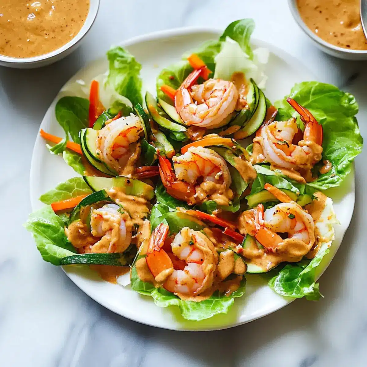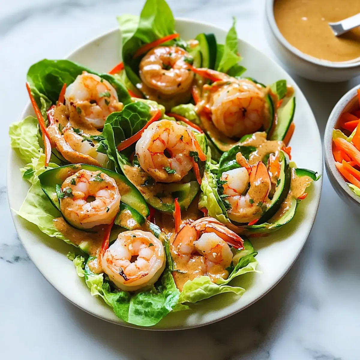 To assemble your shrimp lettuce wraps, take large, sturdy leaves of crisp lettuce and spoon the shrimp and vegetable mixture into each leaf. Drizzle the creamy peanut sauce over the top or serve it on the side for dipping. These wraps are perfect for sharing, so gather around the table and enjoy this healthy, quick meal bursting with flavors in each bite!