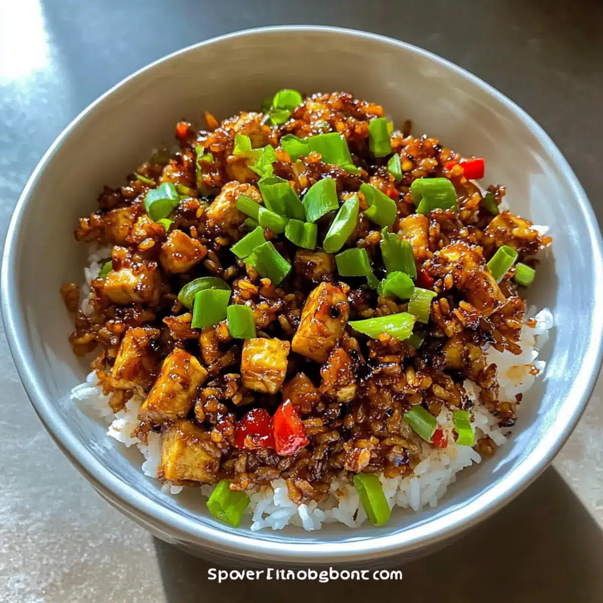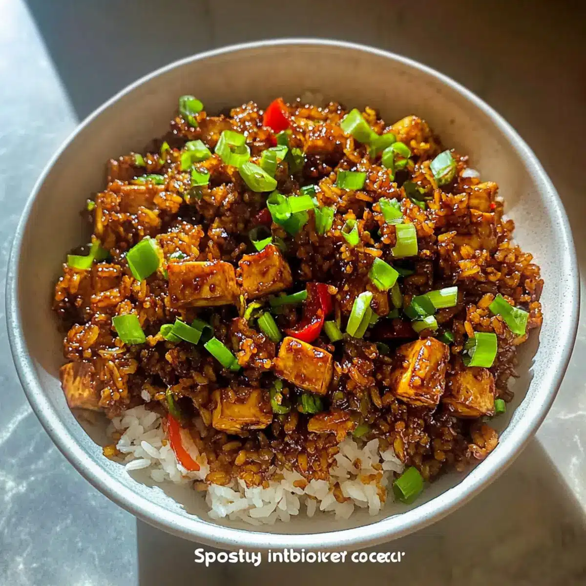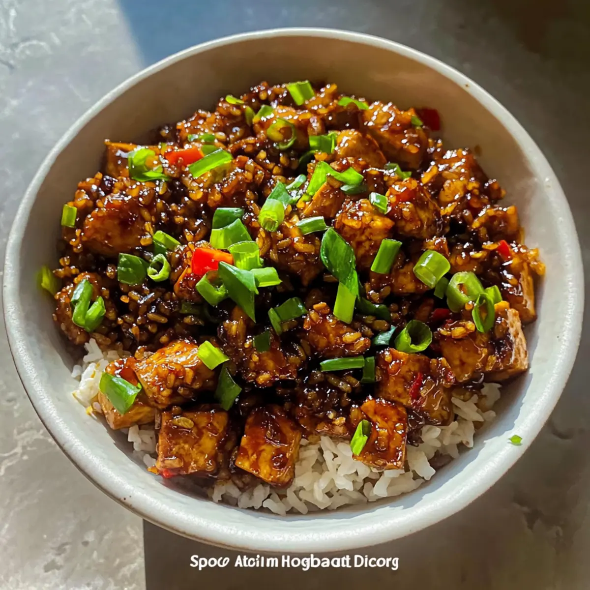 - Serve the tofu mixture over bowls of steaming rice, garnished with additional green onions and sesame seeds.
