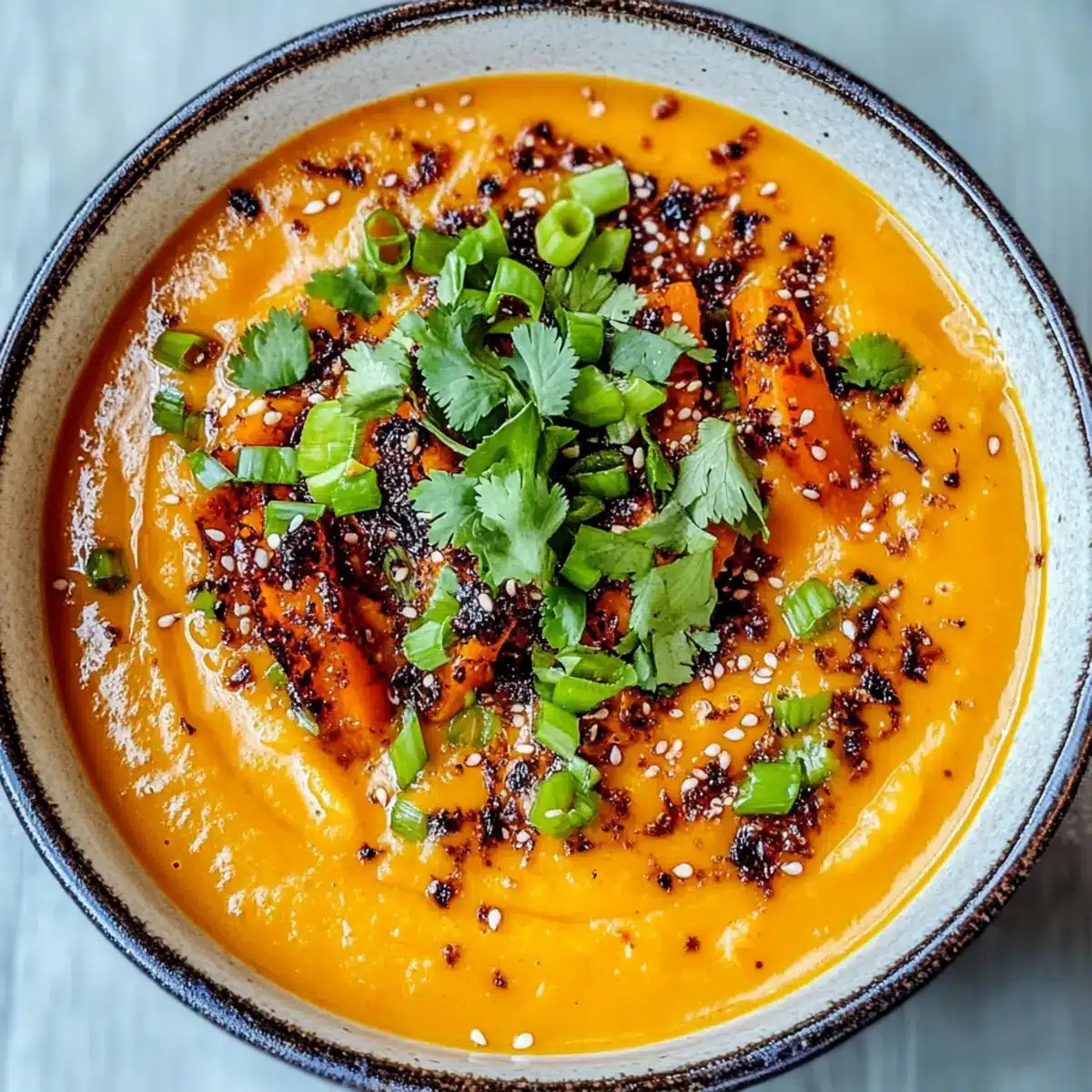 Using an immersion blender, carefully blend the soup until it’s smooth and creamy. If you don’t have an immersion blender, transfer the soup in batches to a regular blender, blending until velvety. This is where the magic of the spicy miso carrot soup truly unfolds!