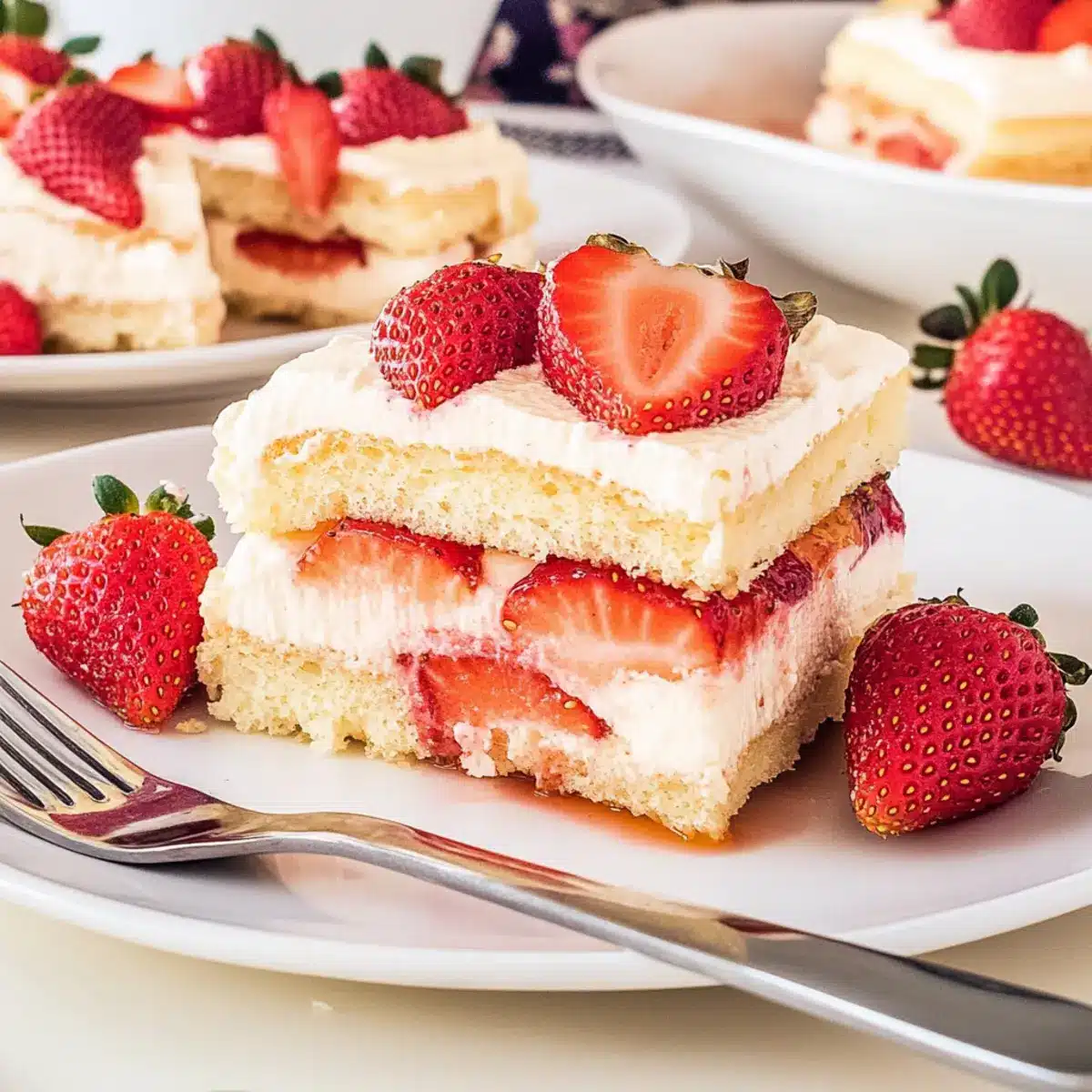 When ready to serve, remove the Strawberry Tiramisu from the fridge. Optionally, you can dust the top with a sprinkle of powdered sugar or garnish with additional fresh strawberries for a lovely presentation. Use a sharp knife to cut into squares, revealing the delicious layers. Enjoy this light and indulgent summer treat with family and friends!