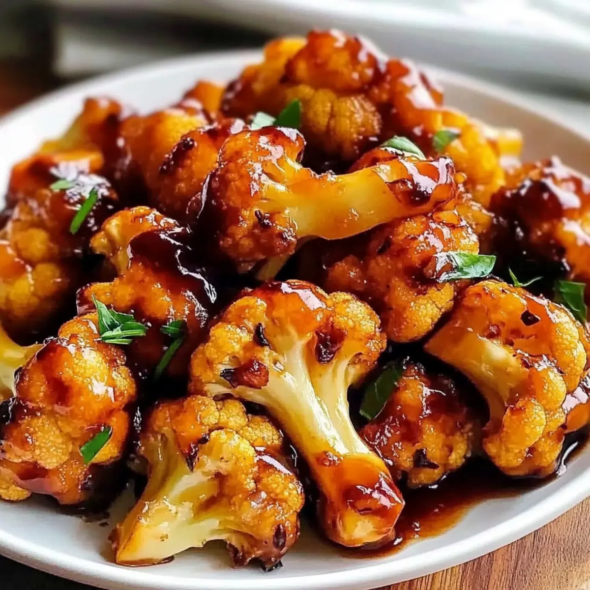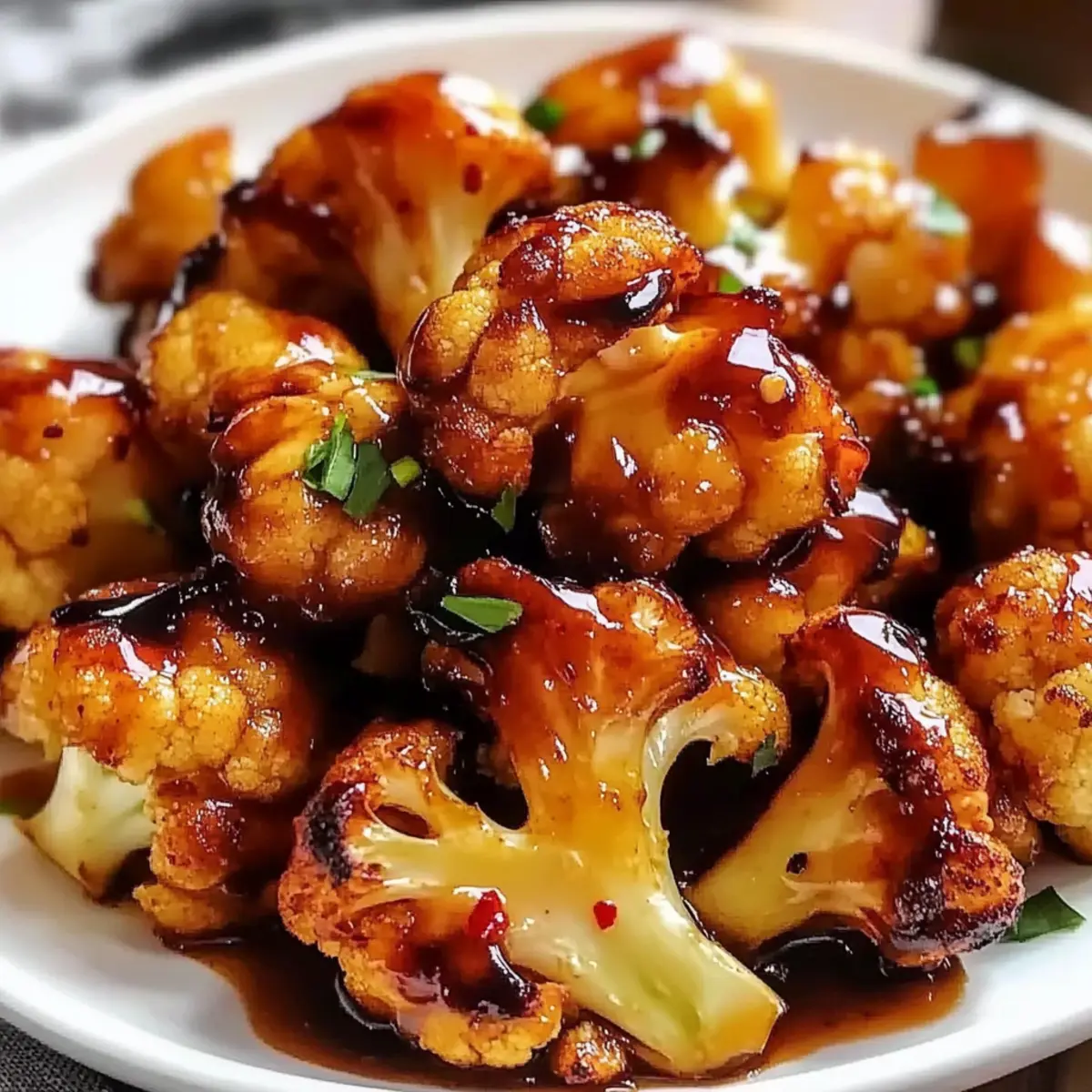 - Drizzle the glaze over the cauliflower florets and toss to coat evenly.
