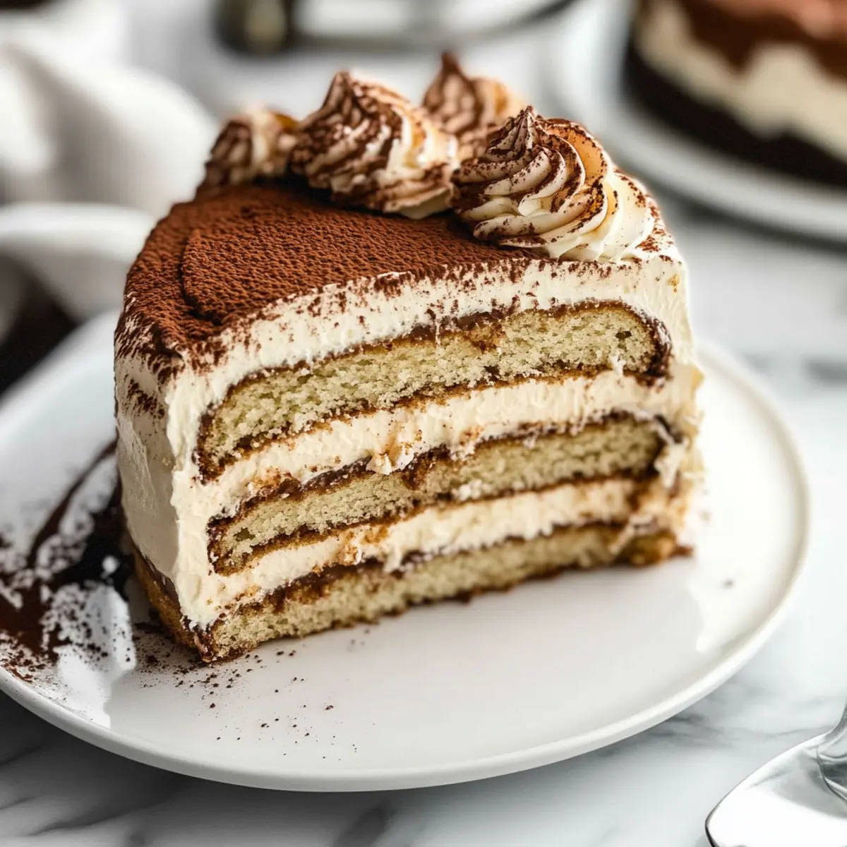 Layer Technique: When assembling, brush each layer generously with espresso or your choice of liquor for added flavor and moisture—this is key for the delightful taste of Tiramisu Cake with Mascarpone Frosting.