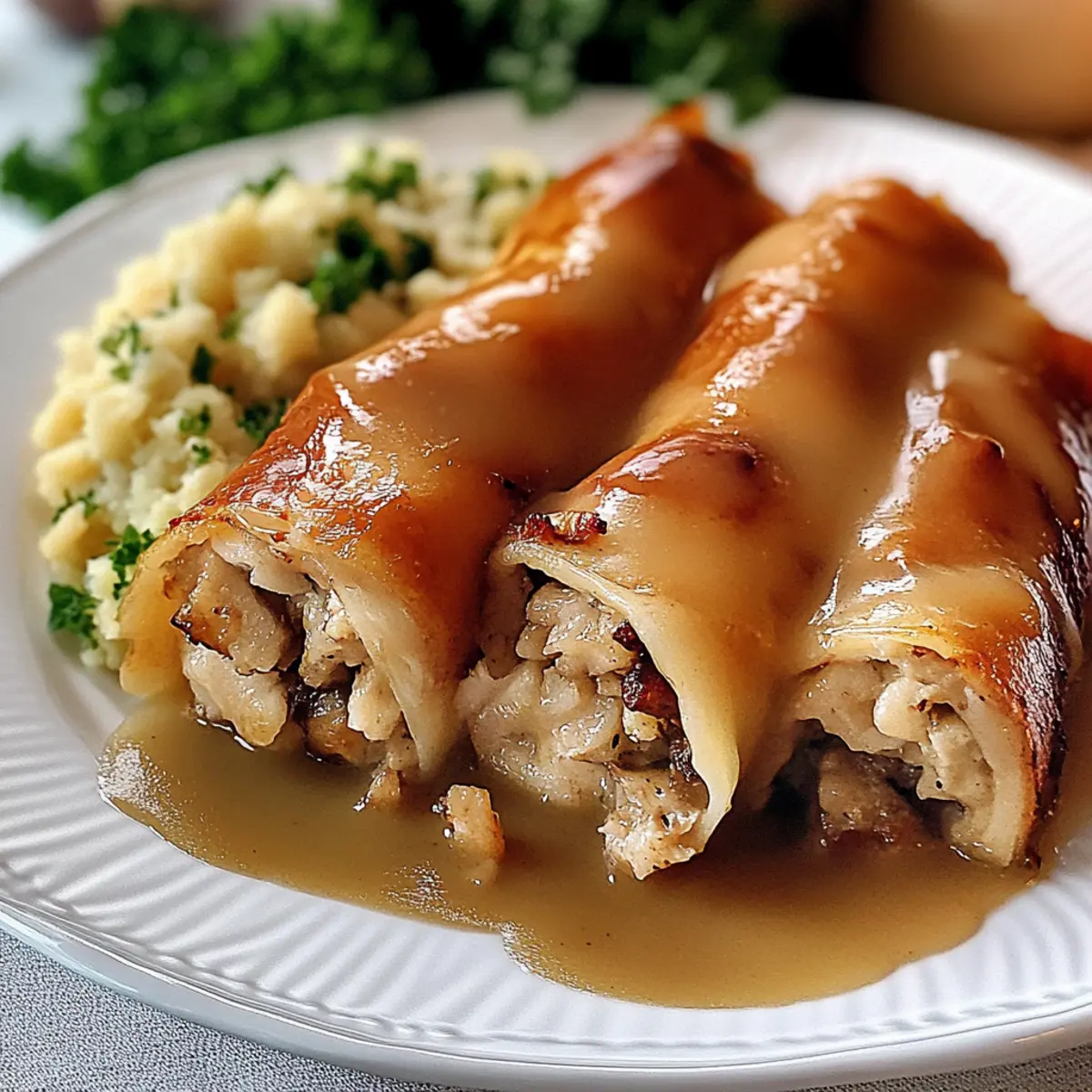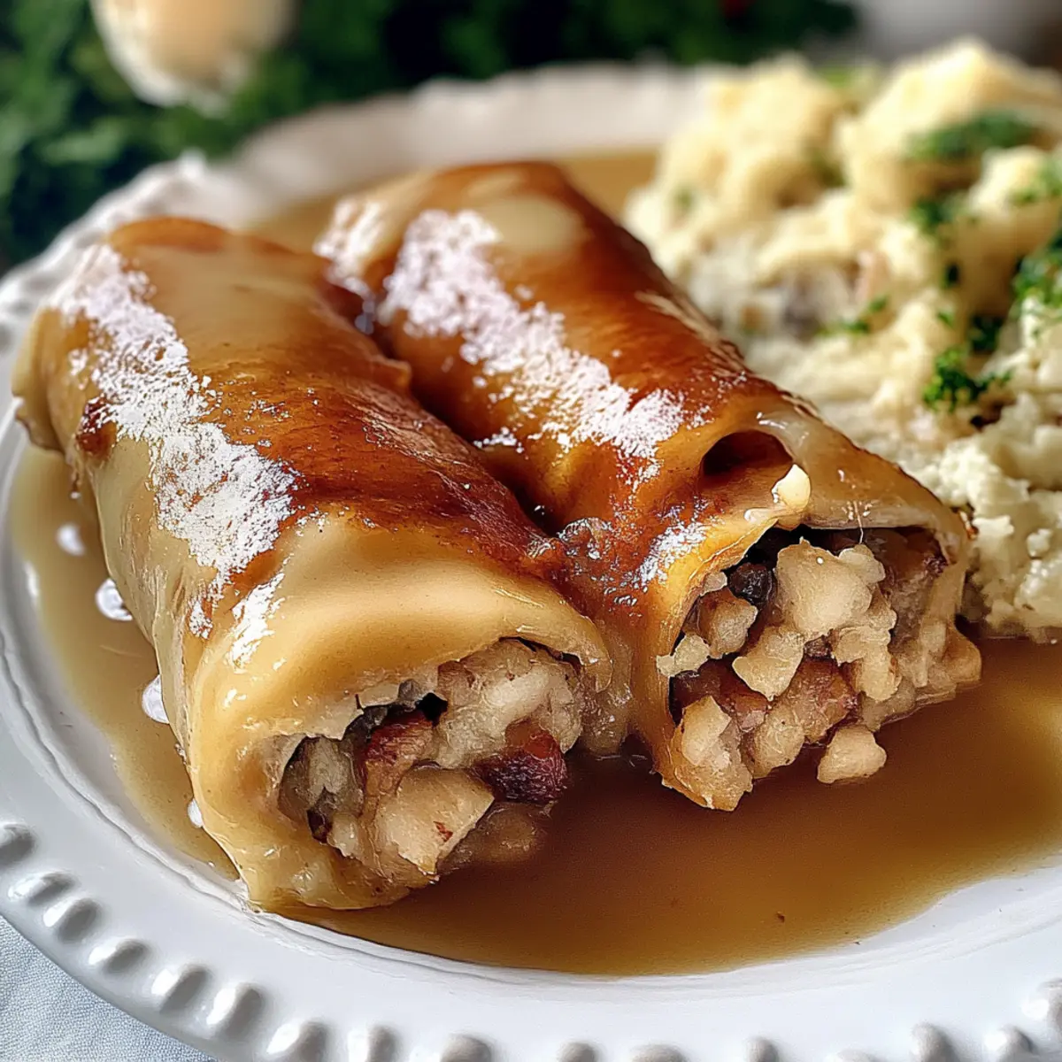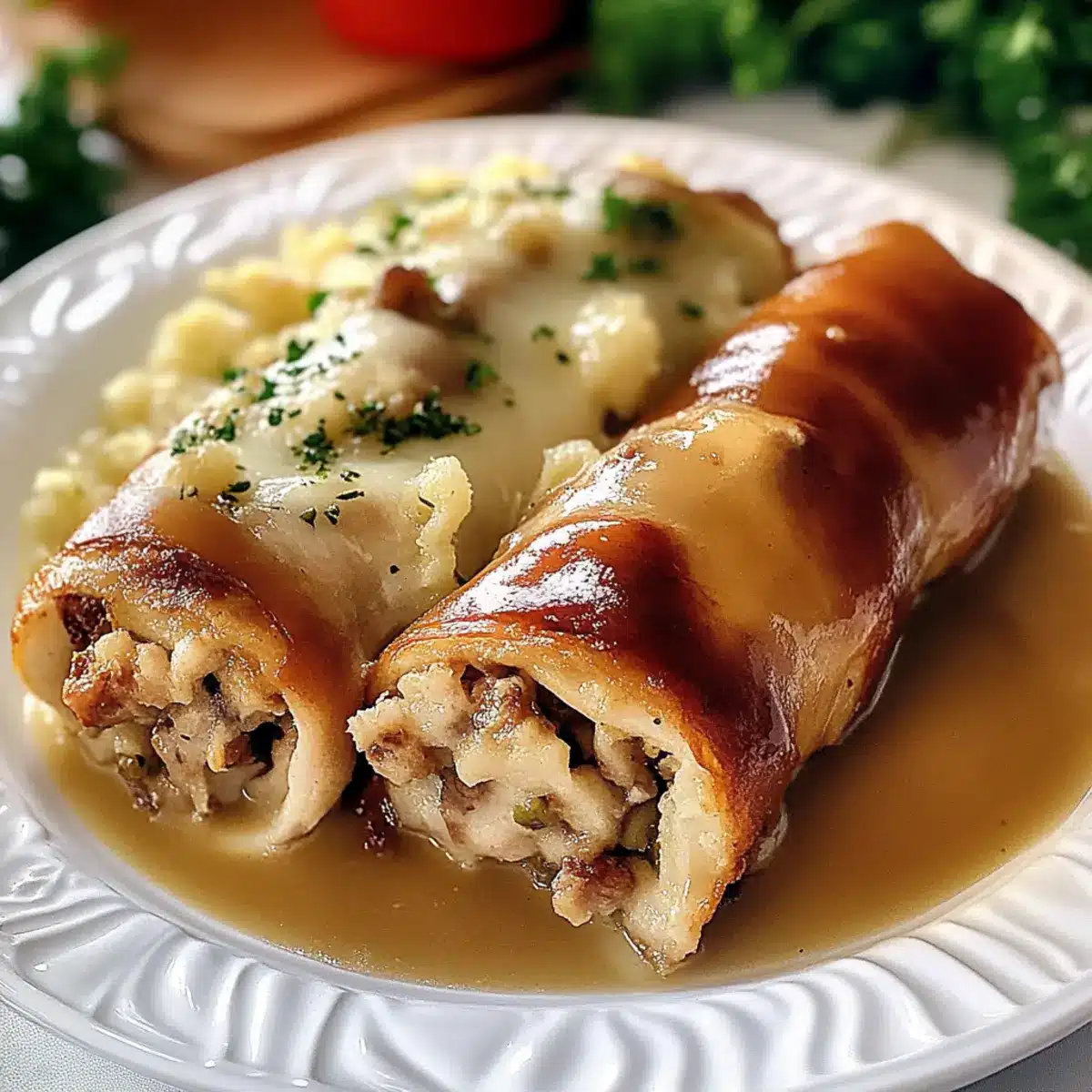 Homemade Gravy: A rich gravy drizzled over the turkey roll-ups adds moisture and a depth of flavor, making every bite memorable.