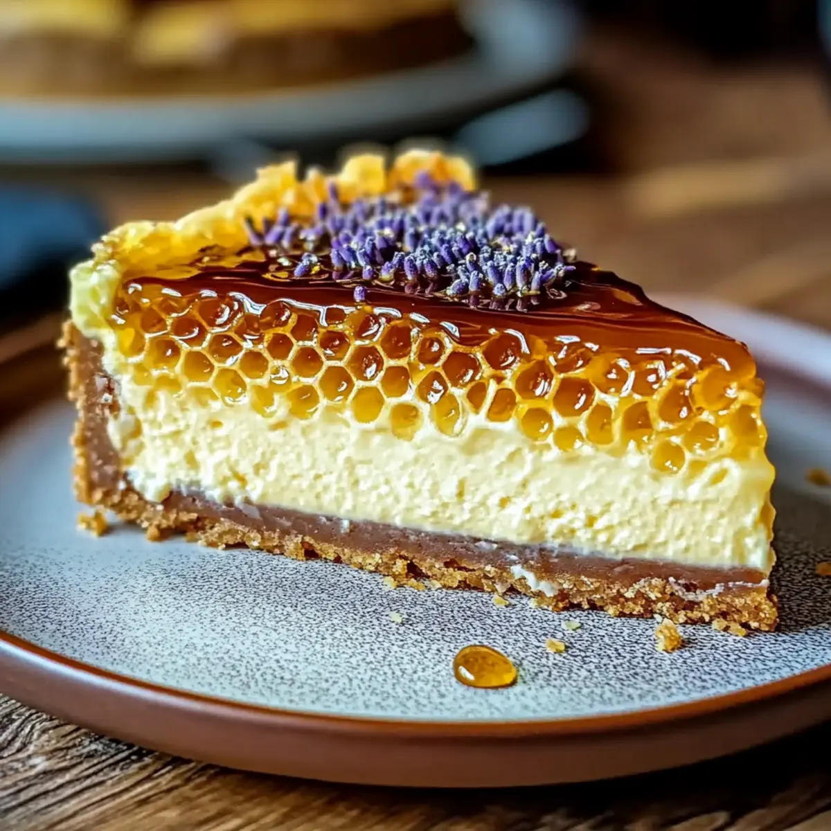 Before serving, remove the cheesecake from the springform pan and place it on a serving platter. Top generously with fresh honeycomb, adding both flavor and a delightful crunch. For an extra touch, drizzle honey over the cheesecake and sprinkle with additional lavender buds and lemon zest for a charming presentation that will mesmerize your guests.