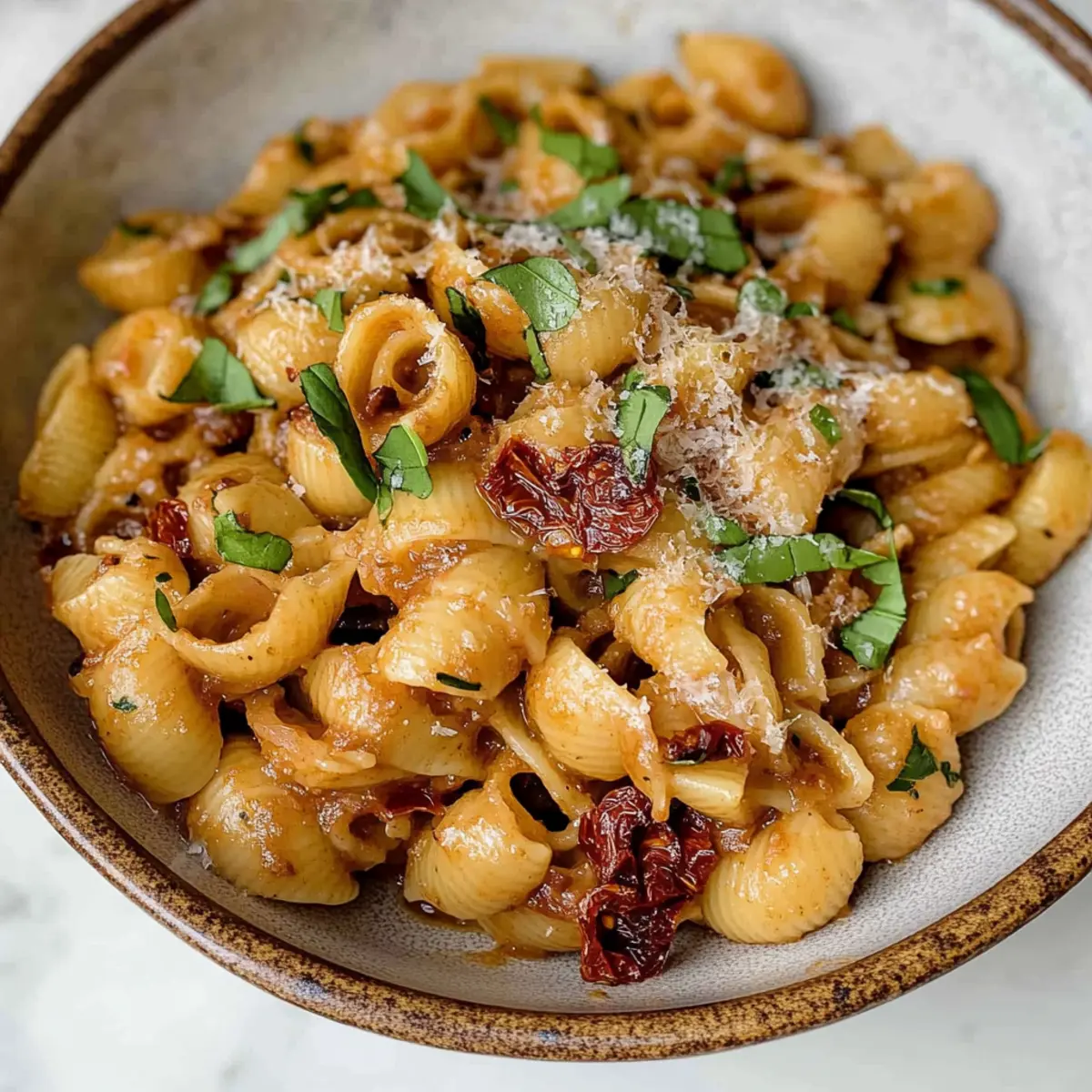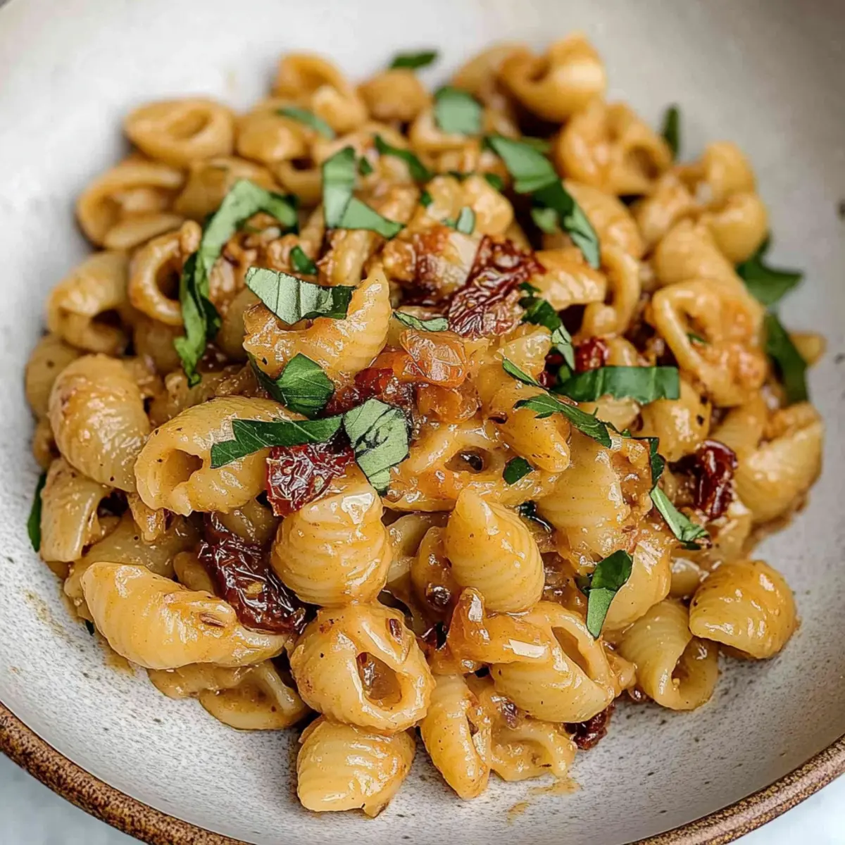 Preparing your Vegan Caramelized Onion Pasta ahead of time is a fantastic way to save time during busy weeknights! You can caramelize the onions and garlic up to 3 days in advance, ensuring their rich flavors are locked in. Just store them in an airtight container in the refrigerator. For even more convenience, you can cook the pasta 24 hours ahead, then toss it with a splash of olive oil to prevent sticking. When you’re ready to serve, simply reheat the onions over medium heat, add the pasta, and mix in your sun-dried tomatoes, balsamic glaze, and tamari. This way, you’ll enjoy a delicious, comforting meal that’s just as flavorful as when freshly made!