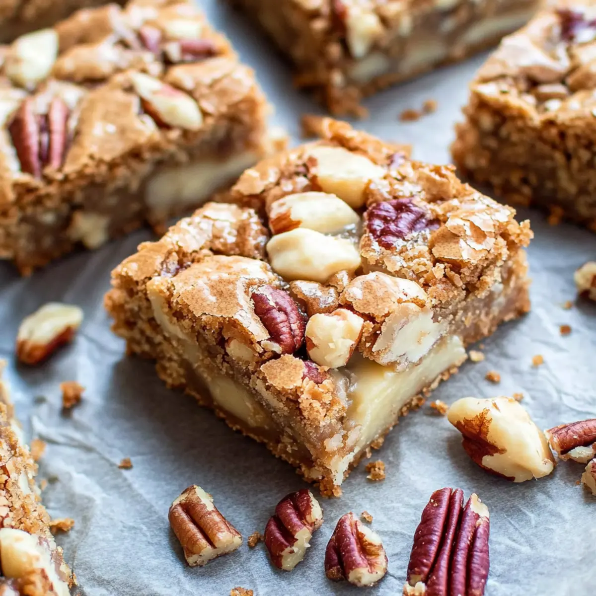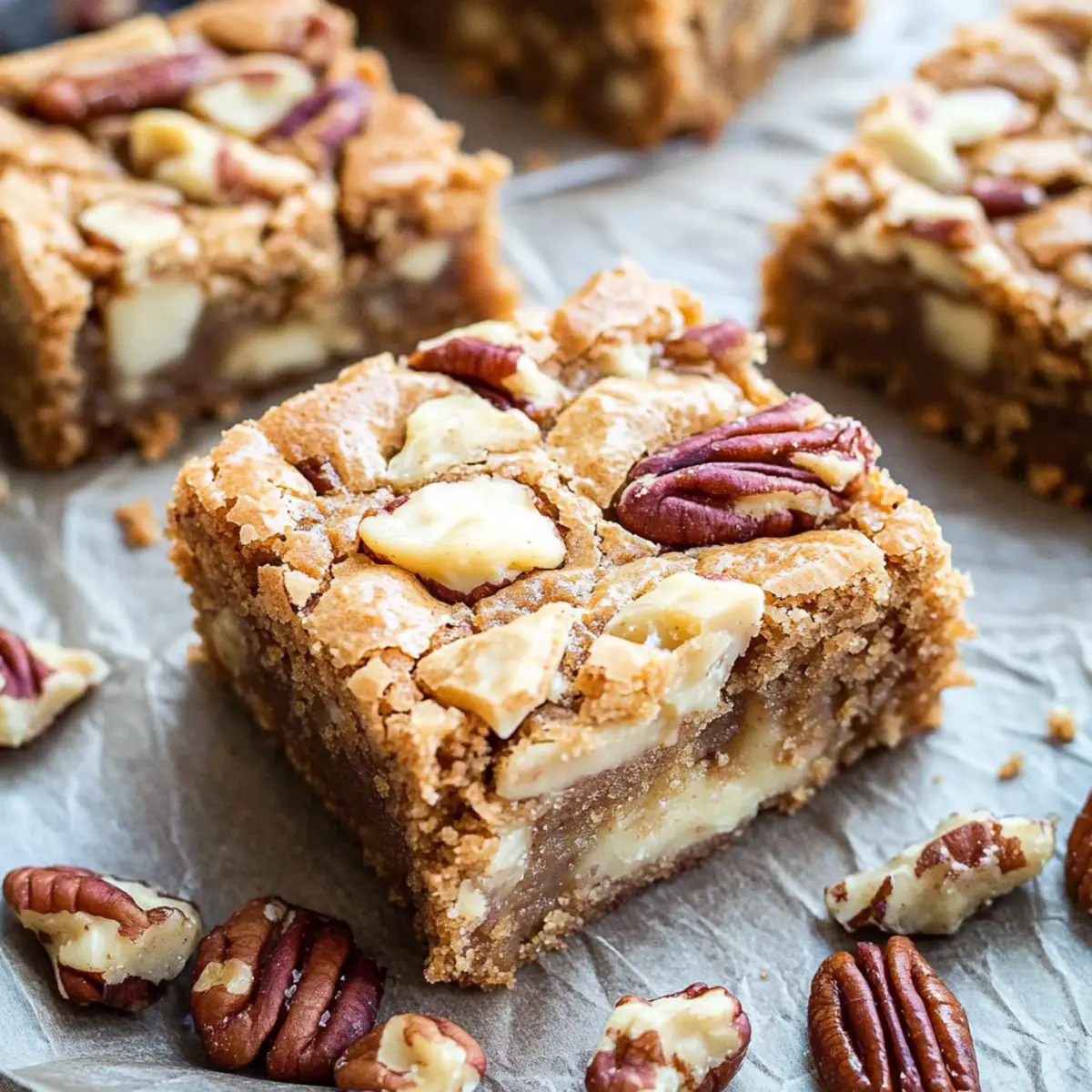 - Use Quality Ingredients: High-quality white chocolate and fresh pecans will elevate the flavor of your blondies. Don’t skimp on these!