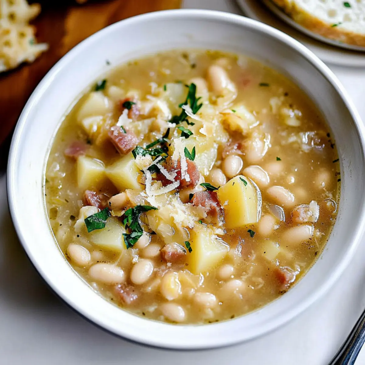 Imagine savoring a warm bowl of Hearty White Pasta e Fagioli while tearing apart crusty bread, spreading it with herb-infused butter as the savory aromas fill the air.