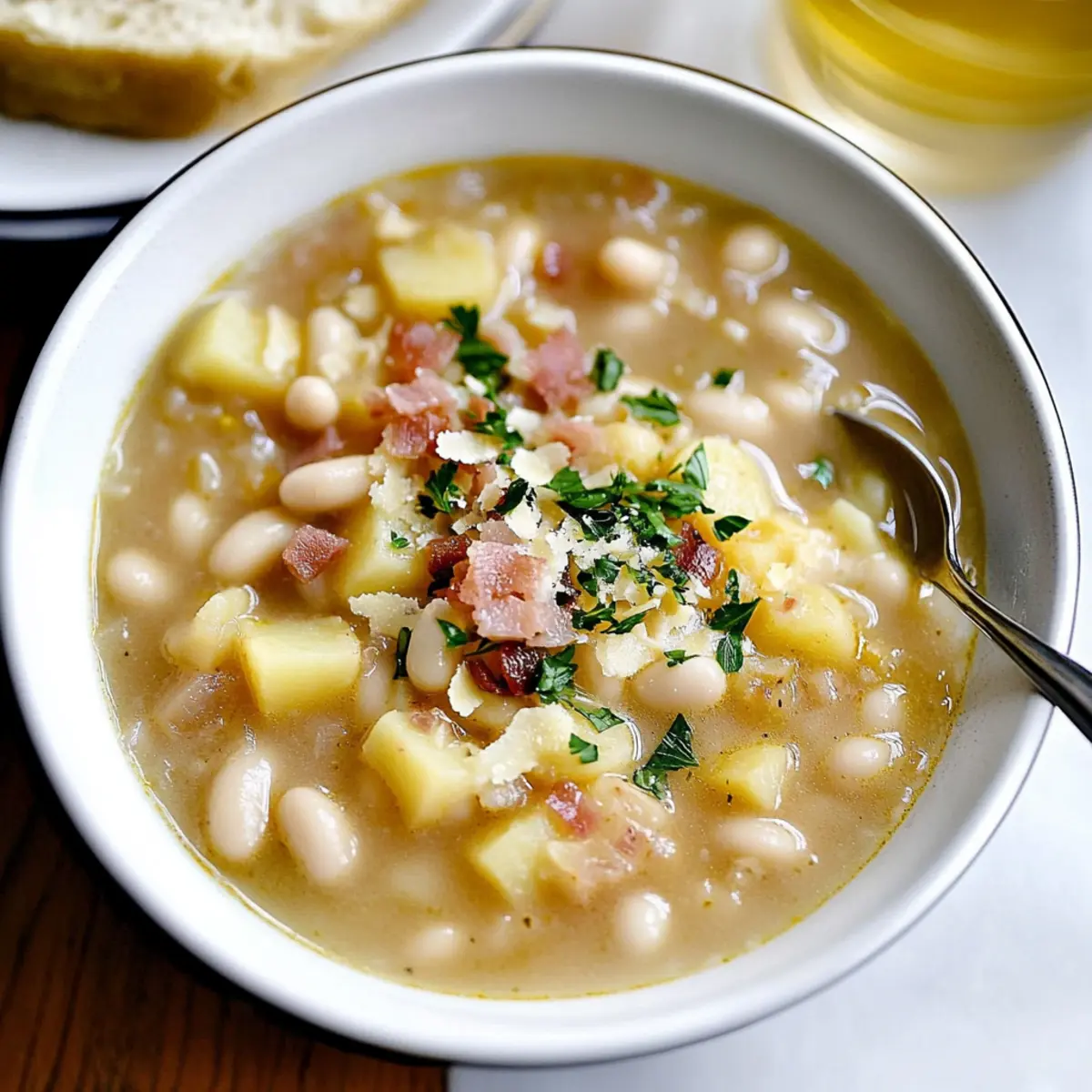 Creamy White Pasta e Fagioli with Savory Pancetta Delight